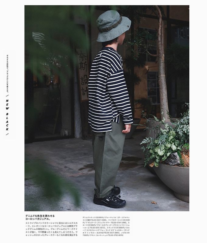 Y B S - 純棉圓領長袖上衣-一起去露營-拼袖杏