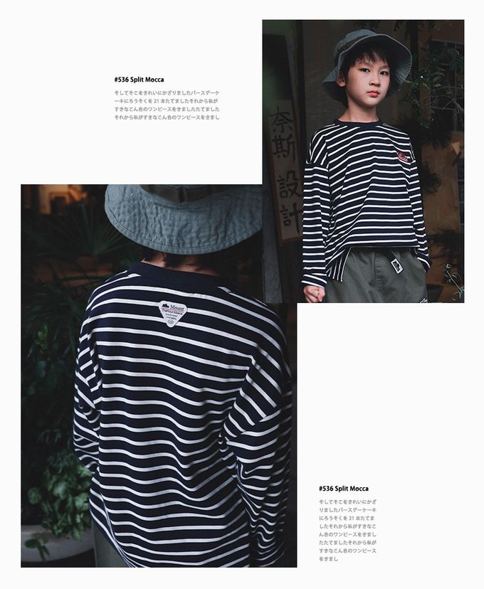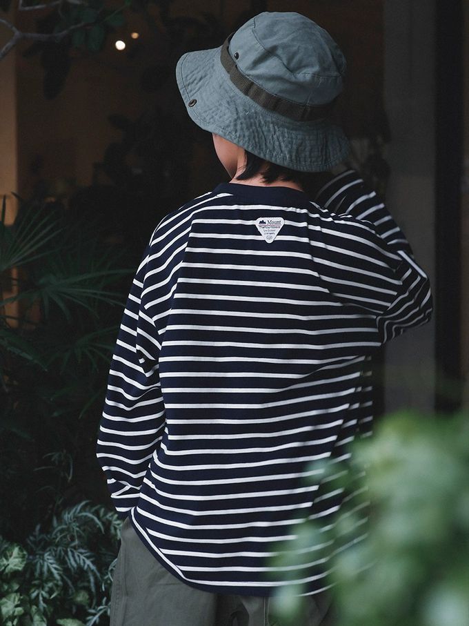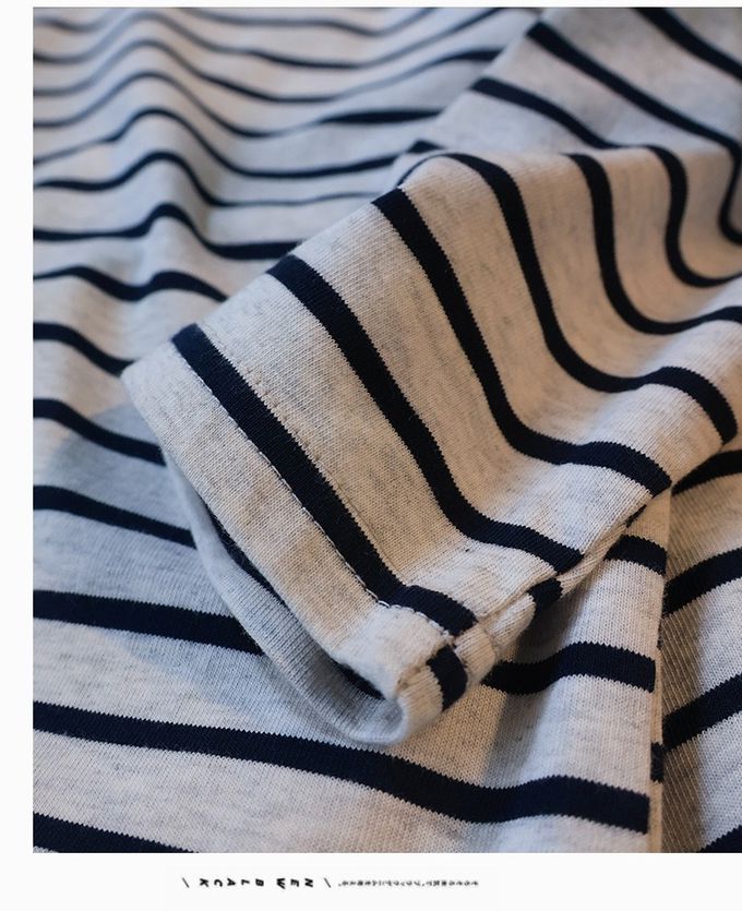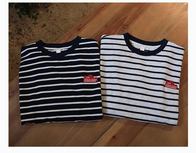 純棉圓領長袖上衣-刺繡小標-藏青條紋