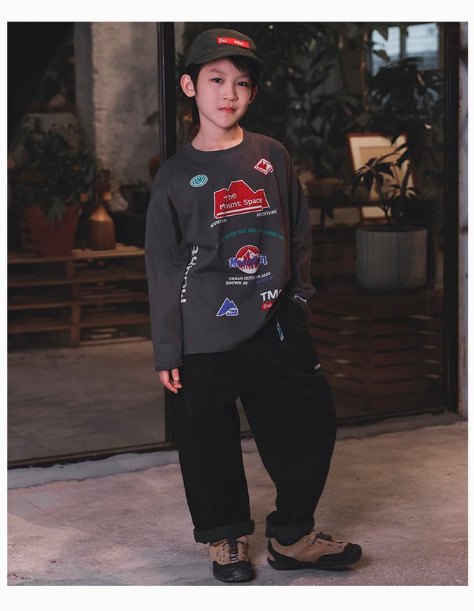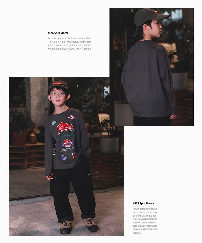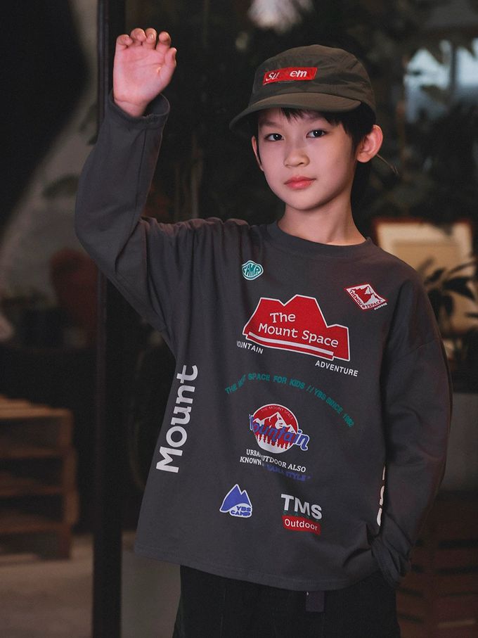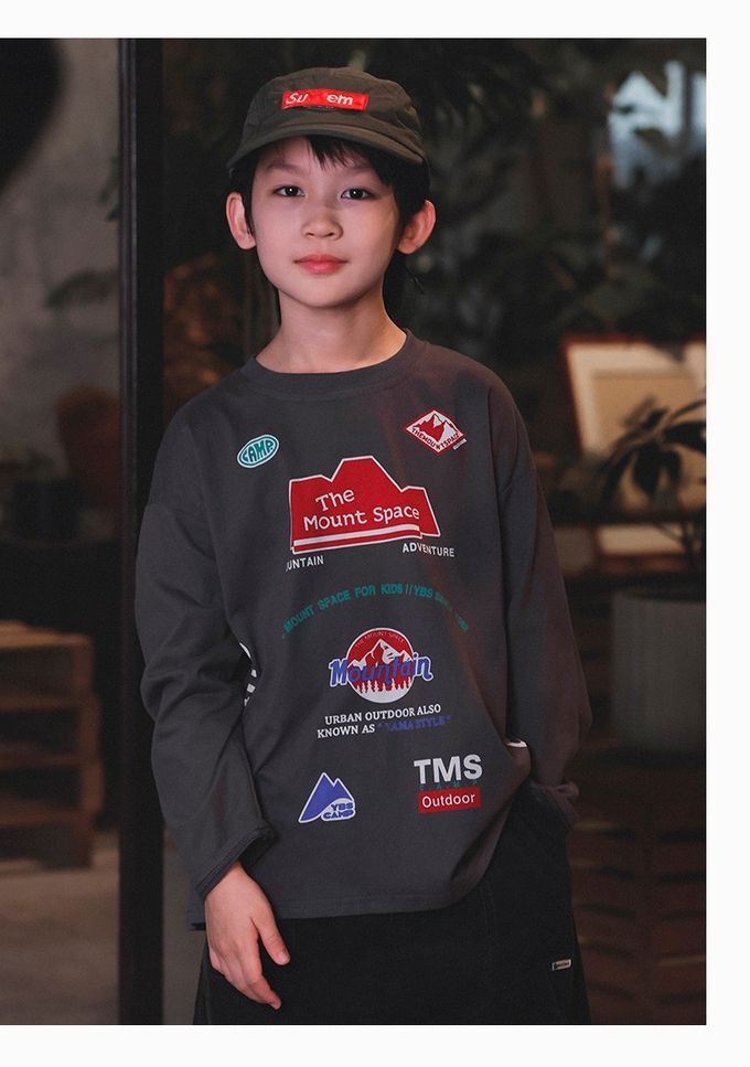 Y B S - 純棉圓領長袖上衣-一起去露營-拼袖杏