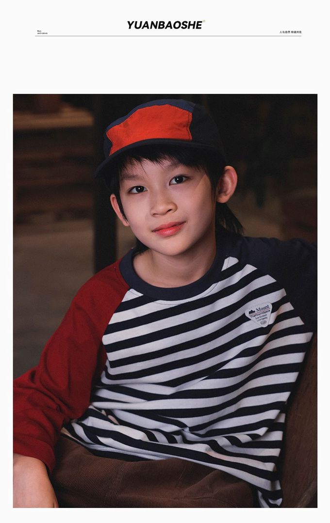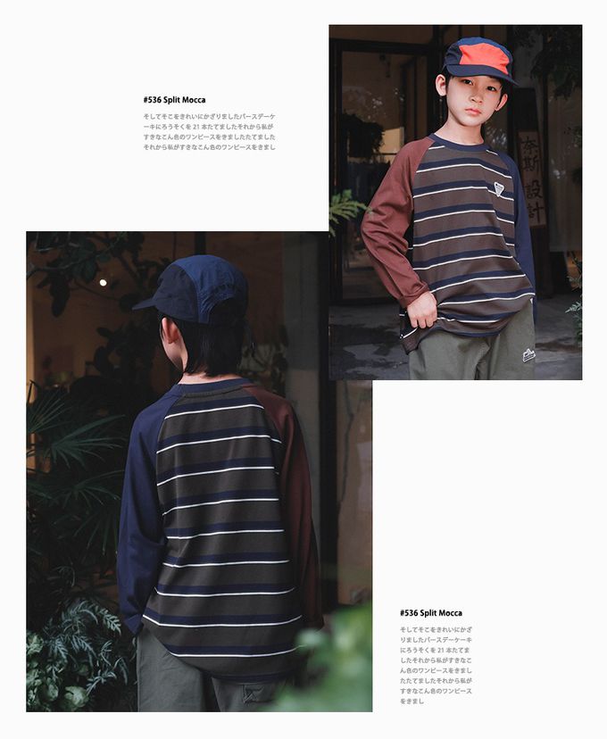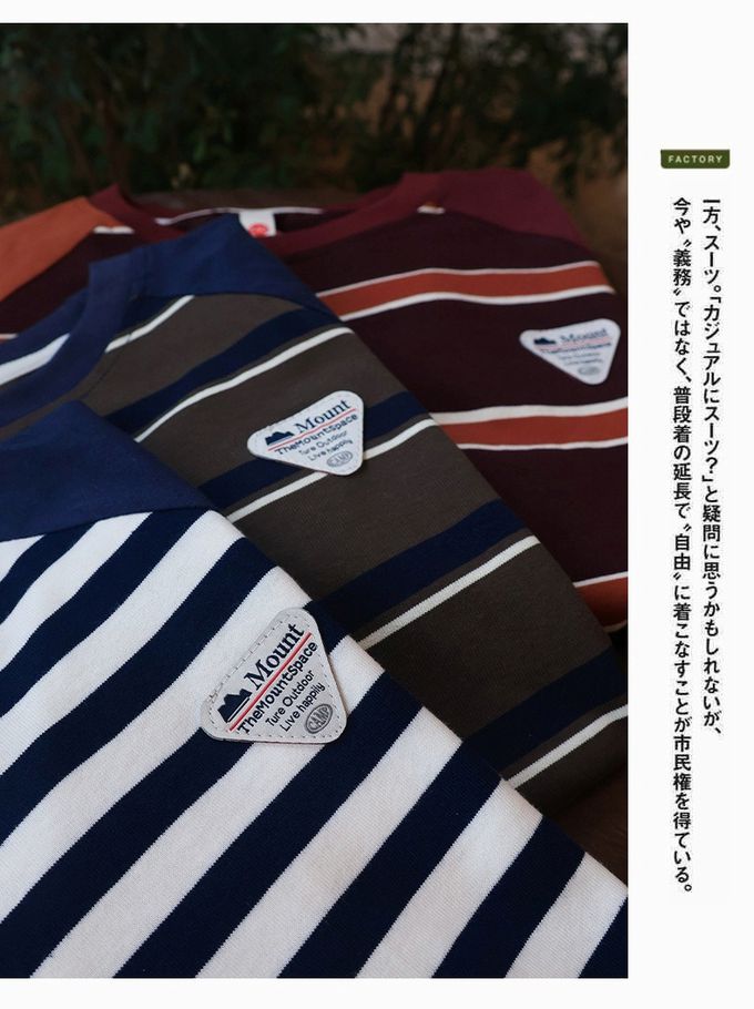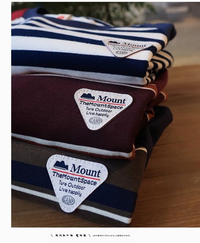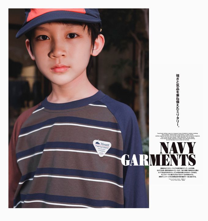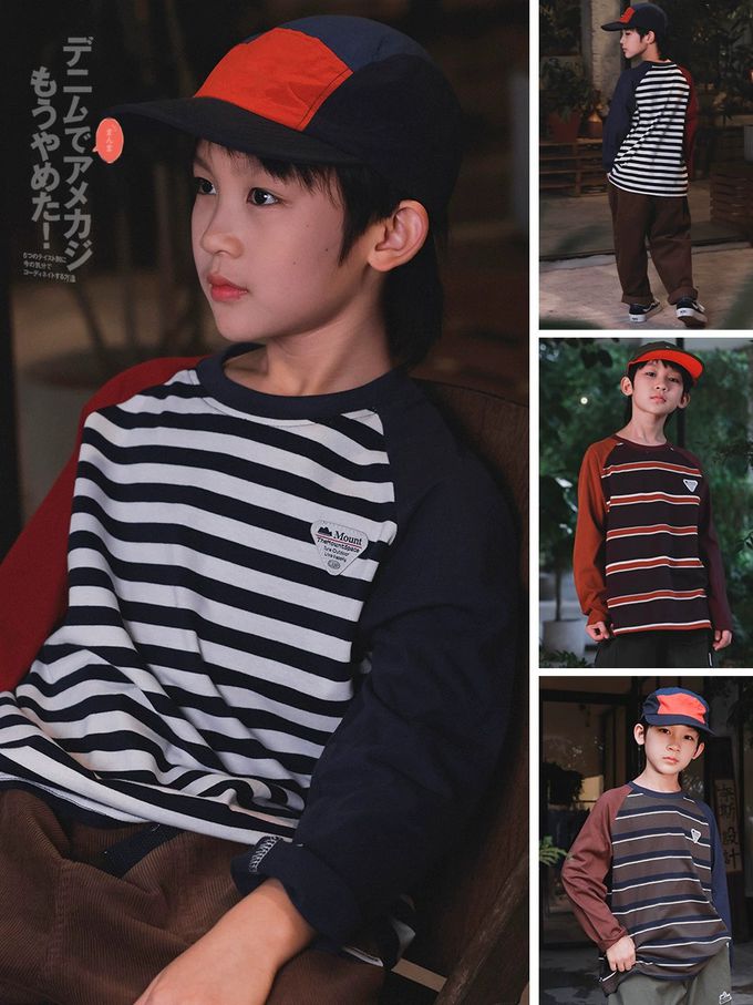棉質圓領長袖上衣-條紋拼色袖-軍綠