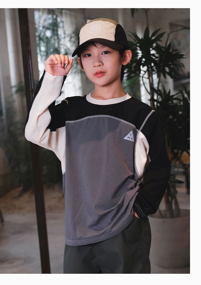 Y B S - 透氣速乾圓領長袖上衣-後文字標語-灰色