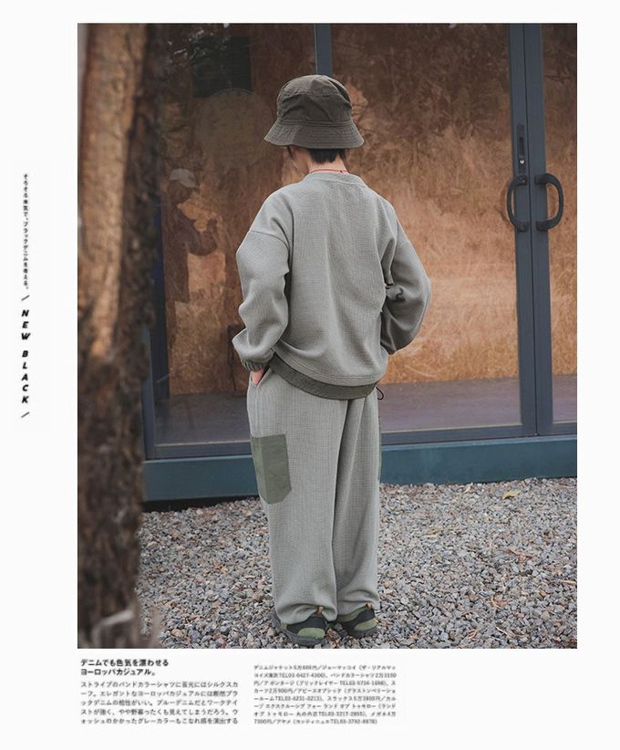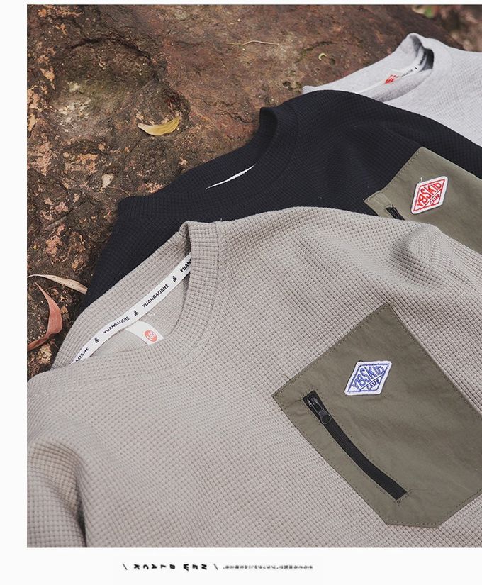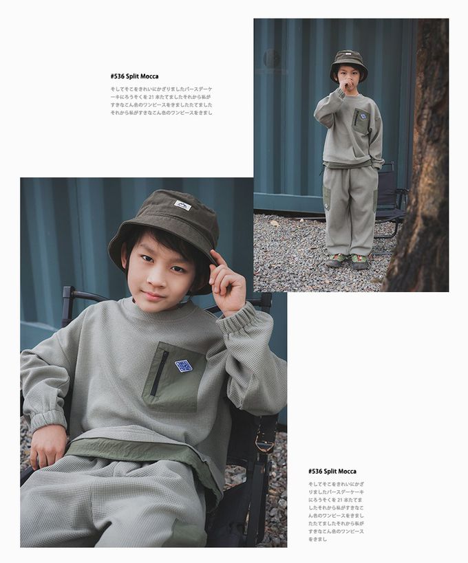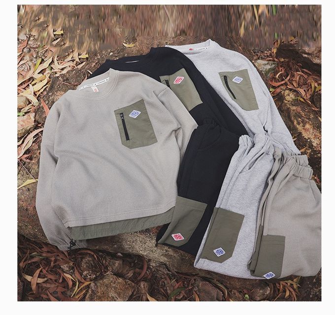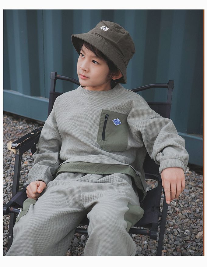 純棉華夫格長袖+長褲兩件式套裝-撞色口袋-綠色