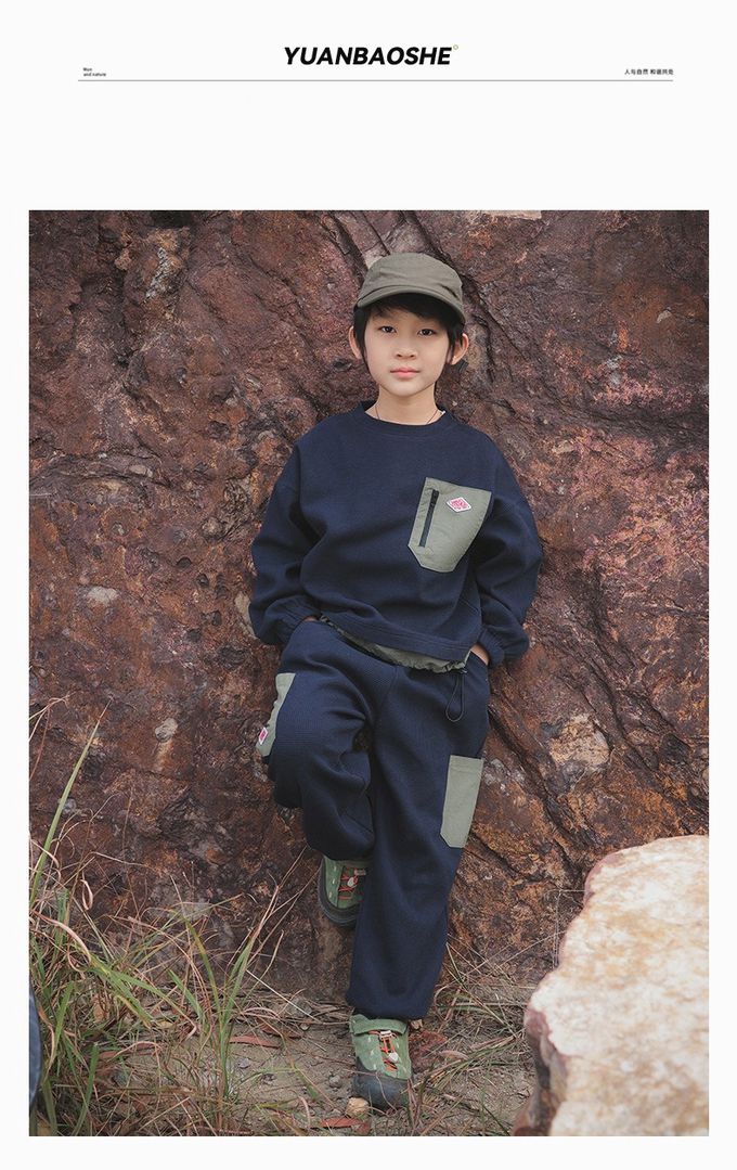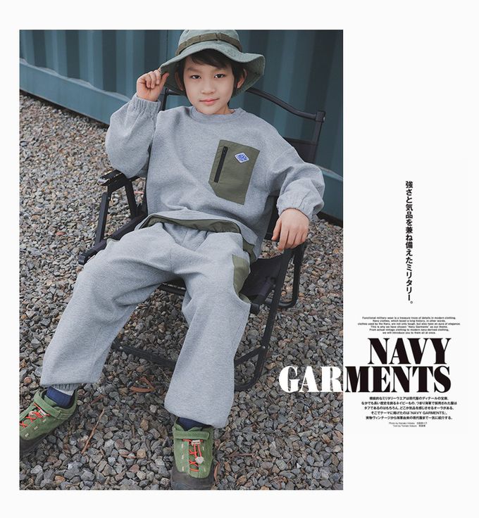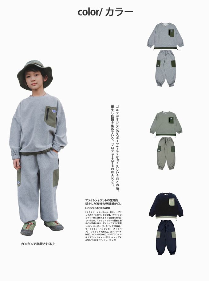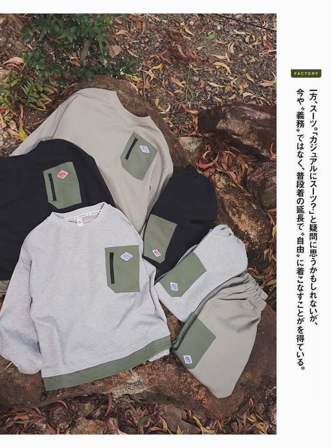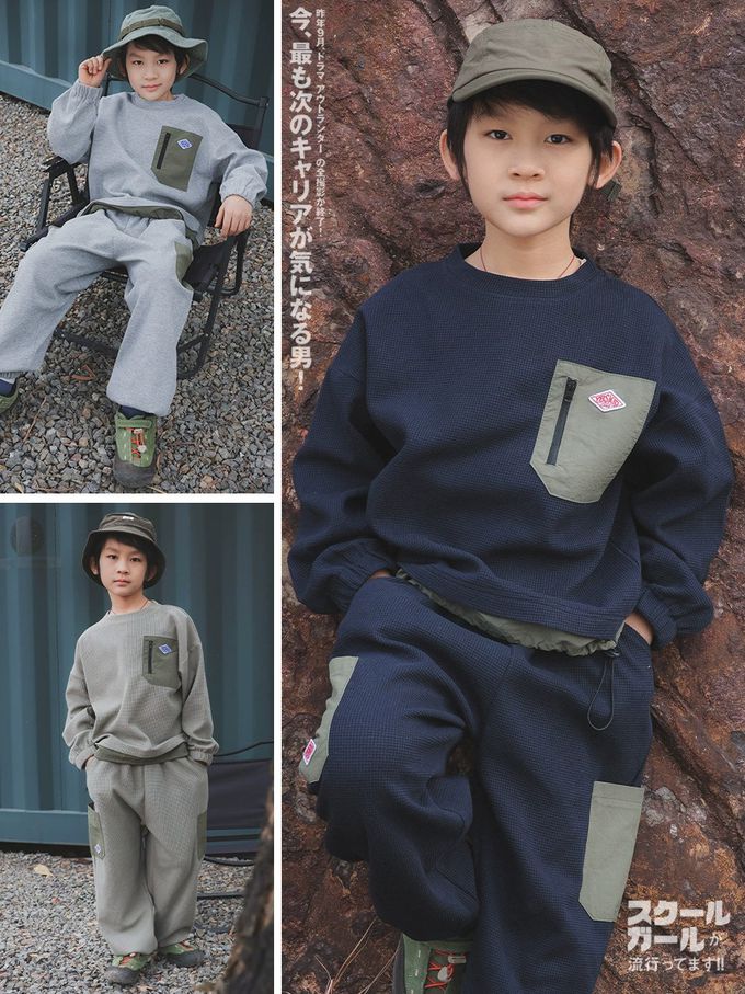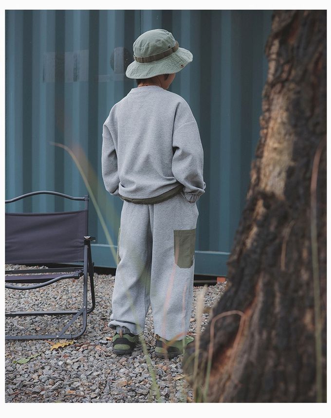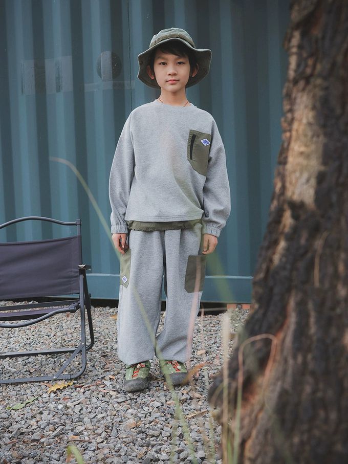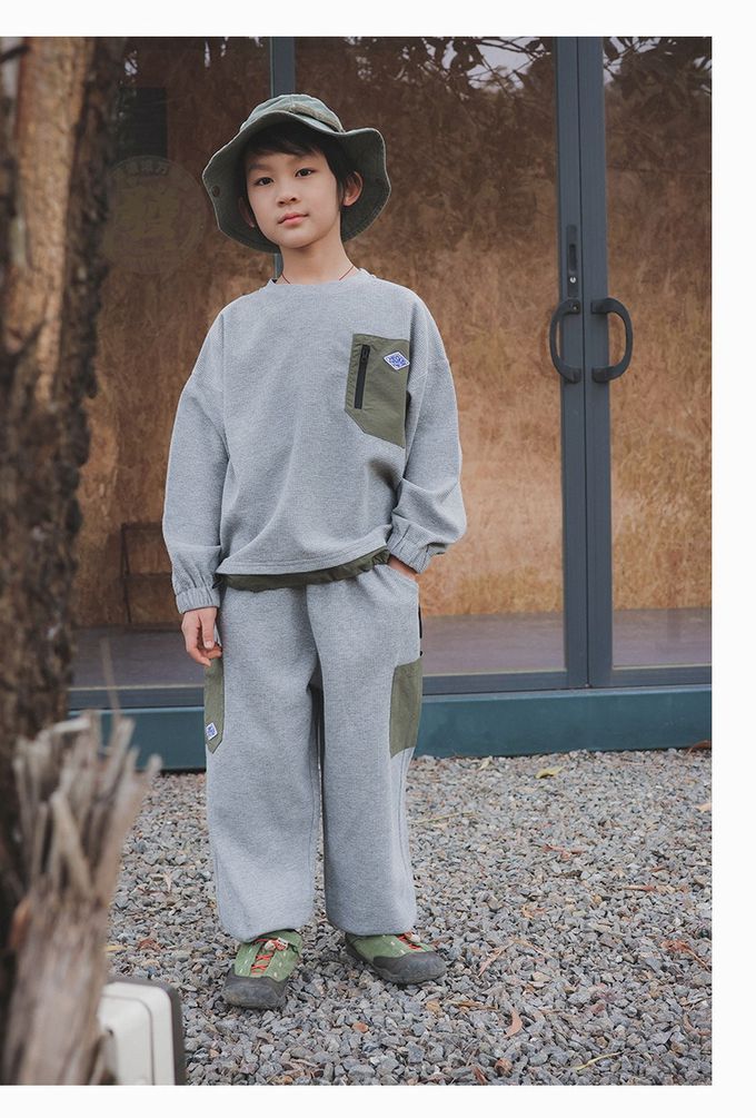 純棉華夫格長袖+長褲兩件式套裝-撞色口袋-灰色