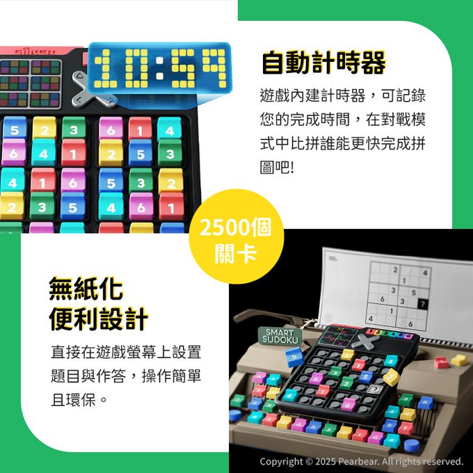 以前都有在紙上玩過數獨遊戲吧!現在有了這台,不僅減少紙張的浪費,還有上千題遊戲關卡,真的是一台無年齡限制數獨遊戲機阿!