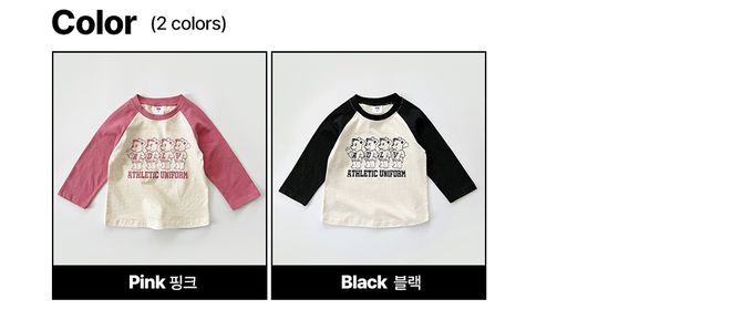 韓國南大門童裝 - W.S.B. 熊熊拼色純棉長袖上衣-乾燥玫瑰粉