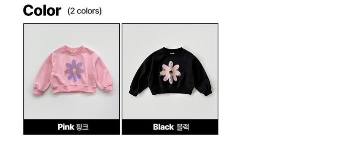 韓國南大門童裝 - W.S.B. 手繪花朵純棉長袖大學T-粉
