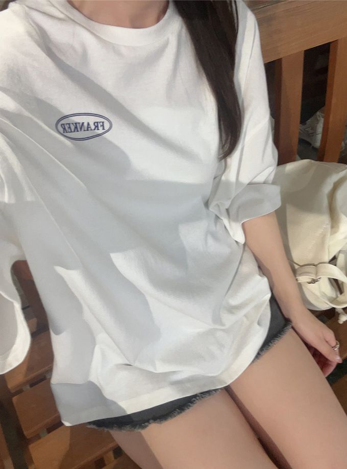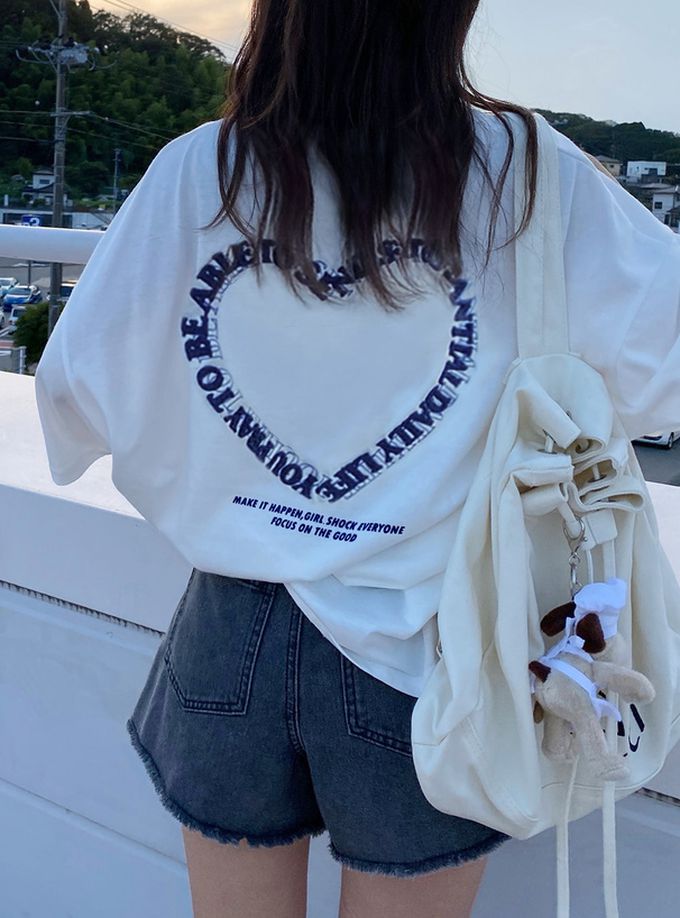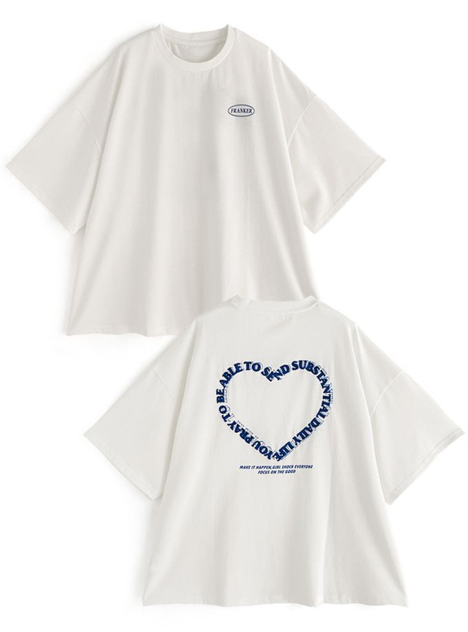 • 品名:背後大愛心刺繡寬鬆長版T恤
