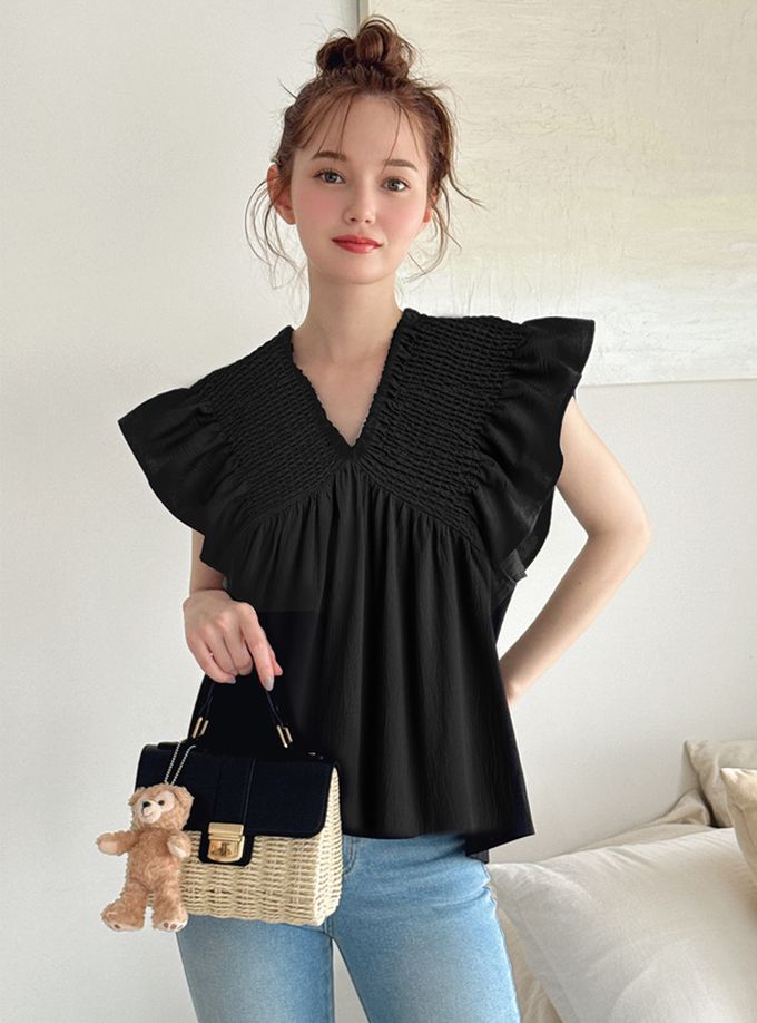 ![日本 GRL - 小V領氣質層次收腰無袖洋裝-經典黑]()