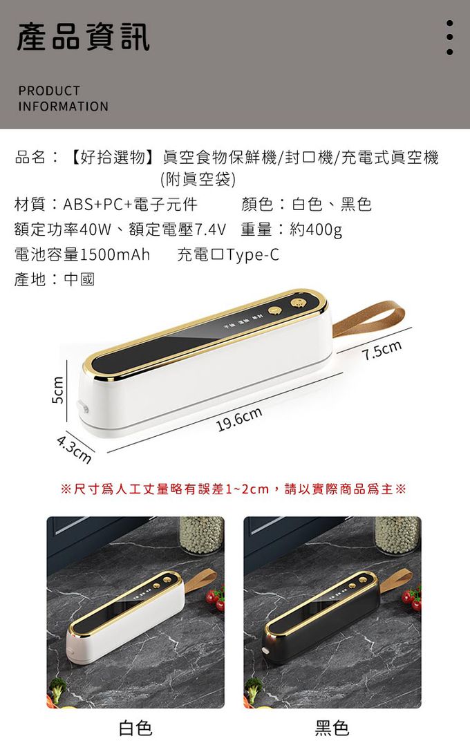 品名:無線真空食物保鮮機/封口機/充電式真空機(附真空袋)