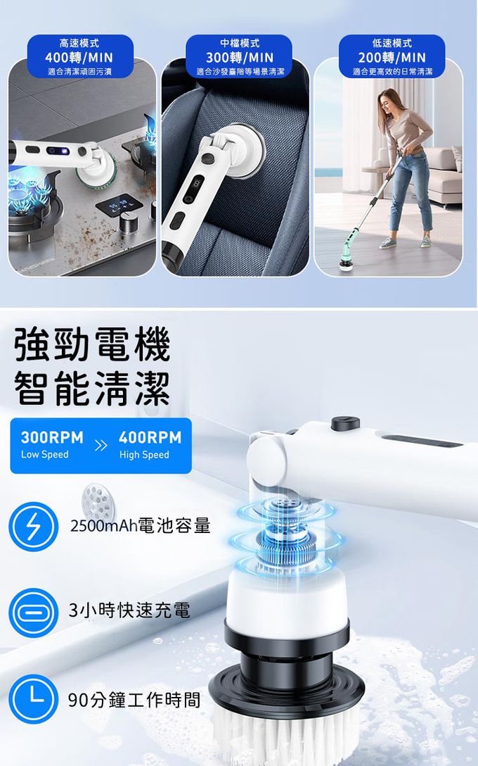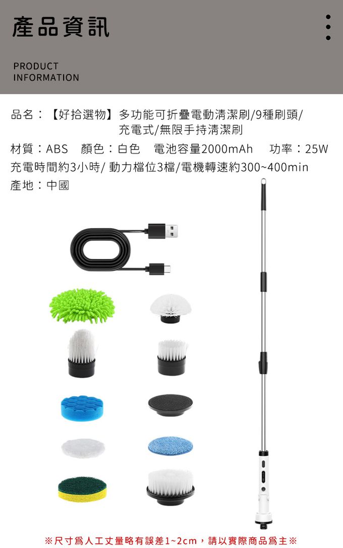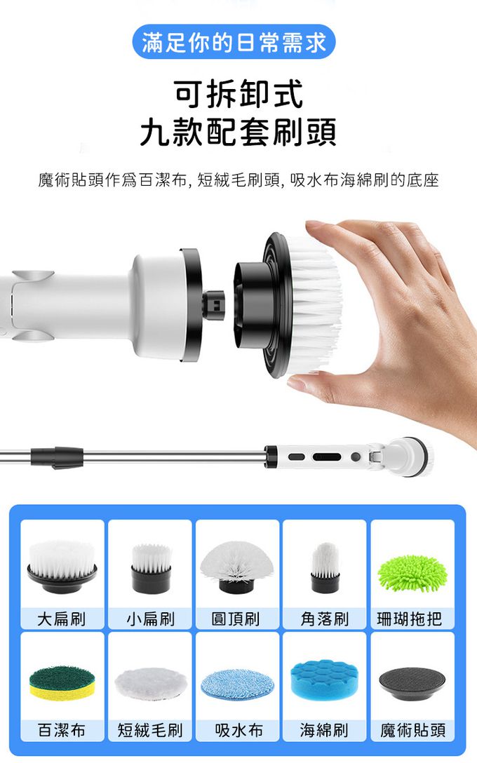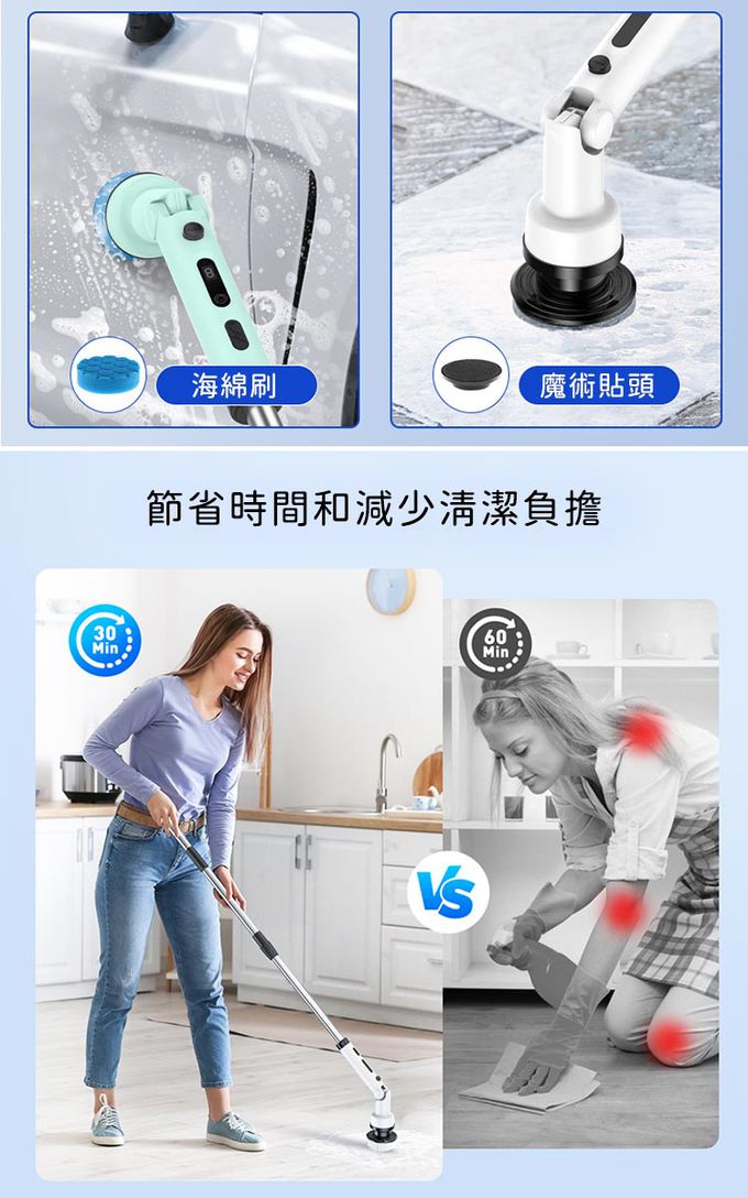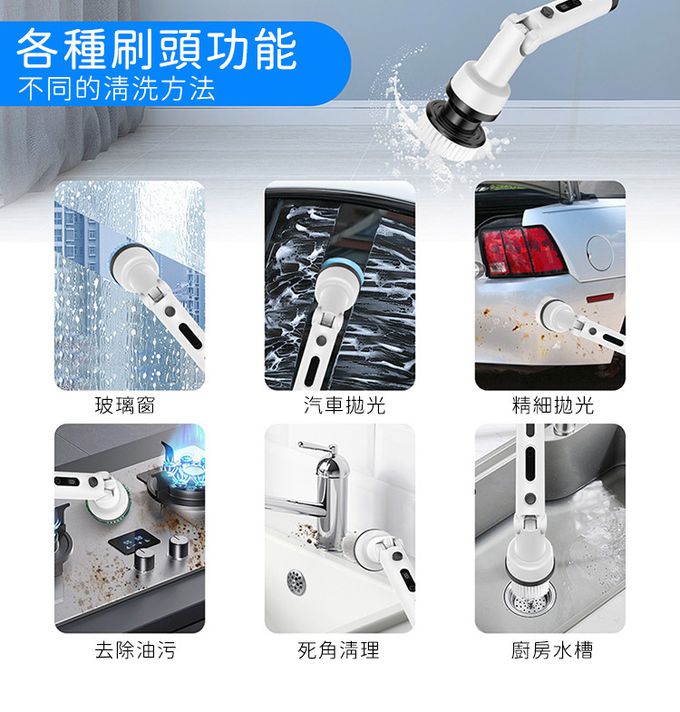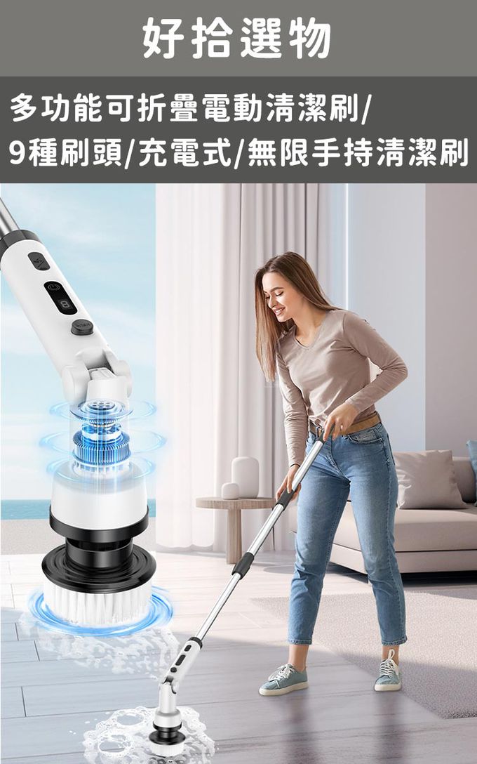 【好拾選物】多功能可折疊電動清潔刷/9種刷頭/充電式/無限手持清潔刷
