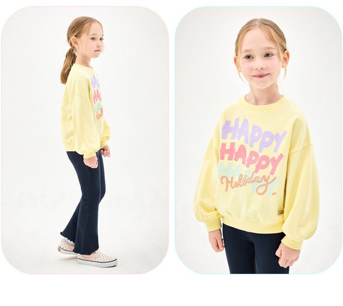 韓國 Jelispoon - HAPPY字印長袖大學T-黃