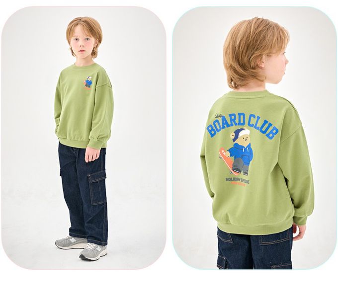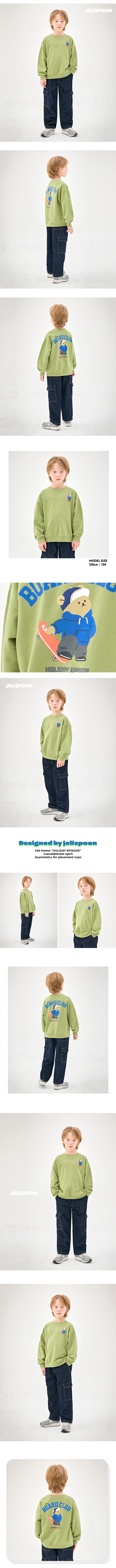 韓國 Jelispoon - 滑板熊熊長袖大學T-綠