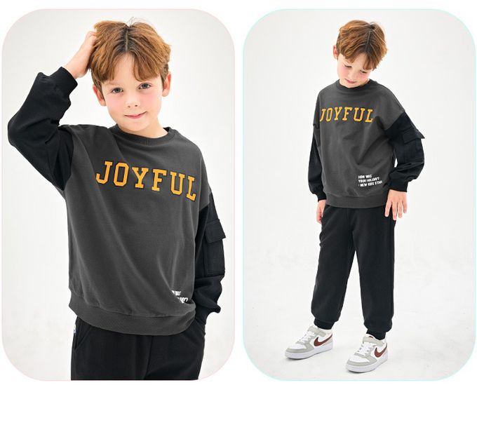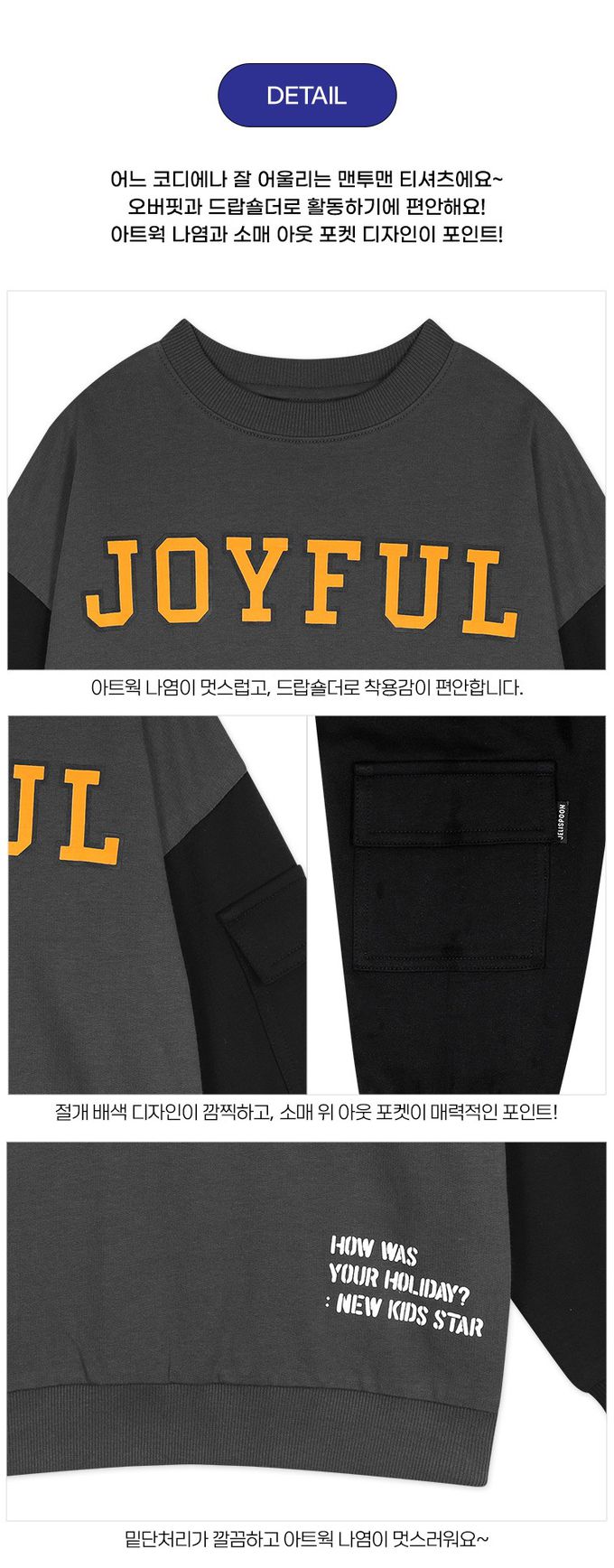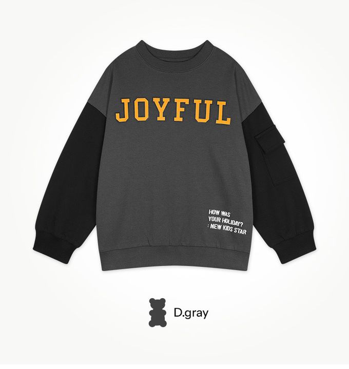 韓國 Jelispoon - JOYFUL拼色長袖大學T-深灰X黑