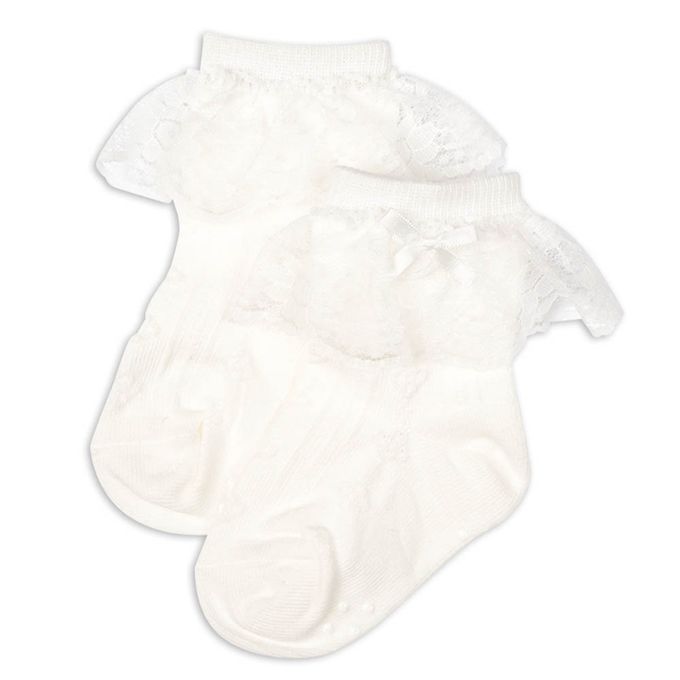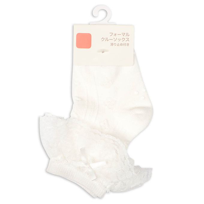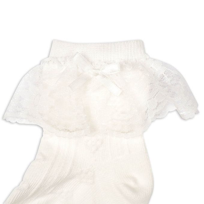 正式中長襪蕾絲蝴蝶結-白色 (9~14cm)