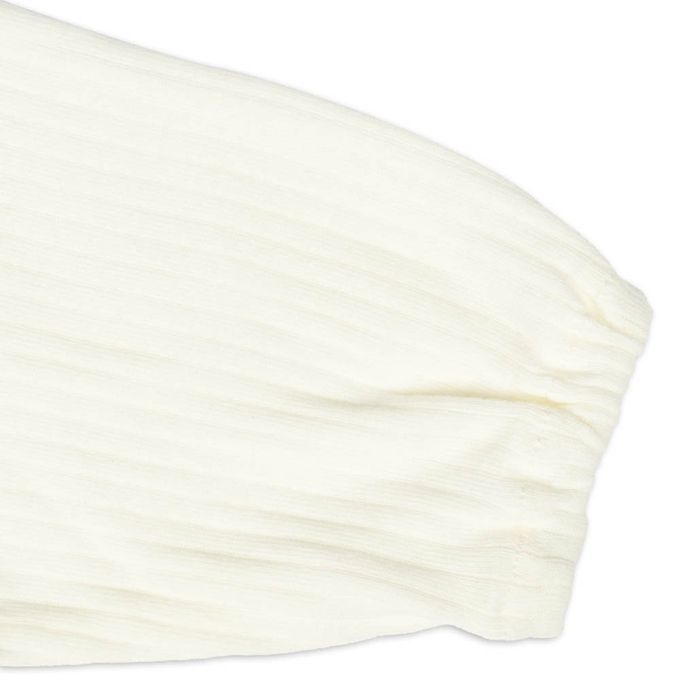 當小寶寶的雙腳開始會活潑地舞動時,可變換成分腳連身衣穿,衣服就不會往上掀開。