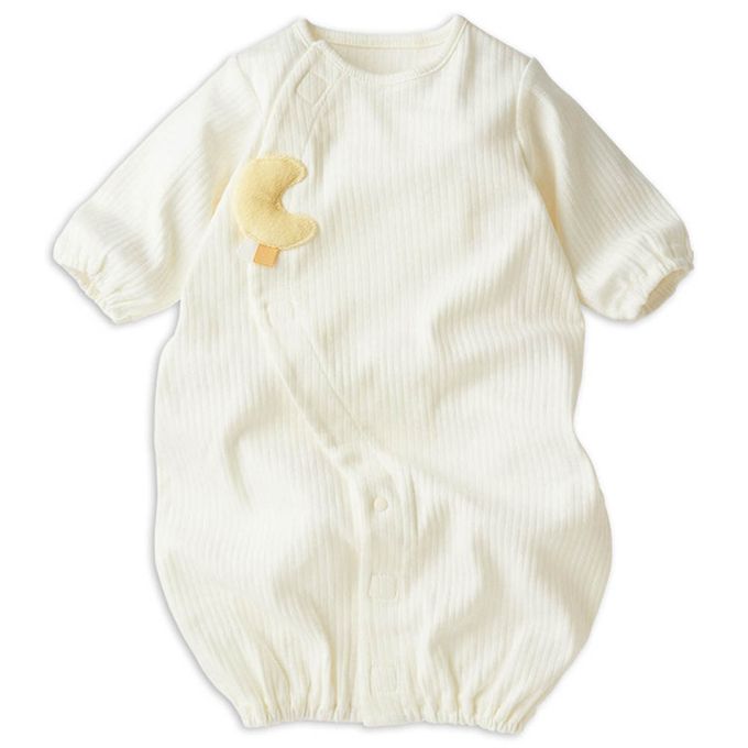 akachan honpo - 長袖連身衣 穿衣練習-穿脫方便省時-米白色 (50~60cm)