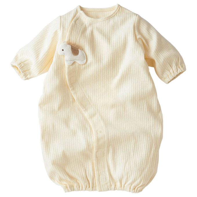 akachan honpo - 長袖連身衣 穿衣練習-穿脫方便省時-象牙白色 (50~60cm)