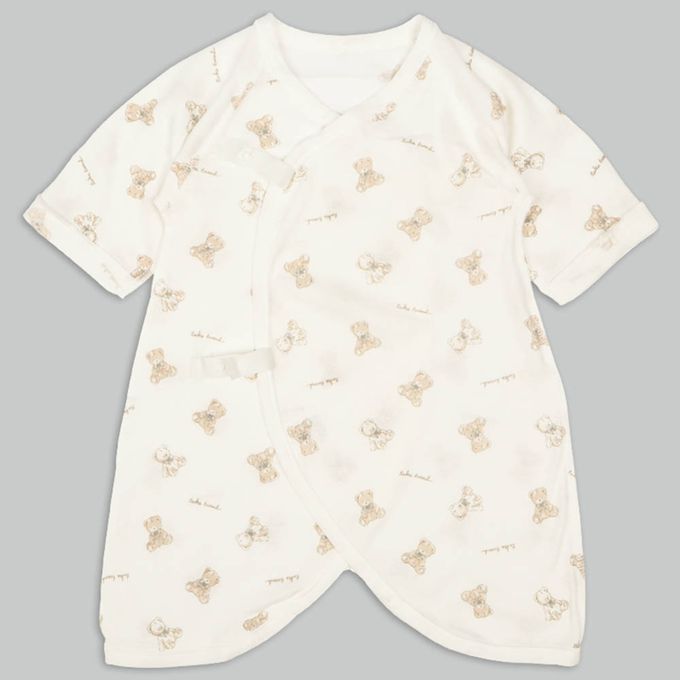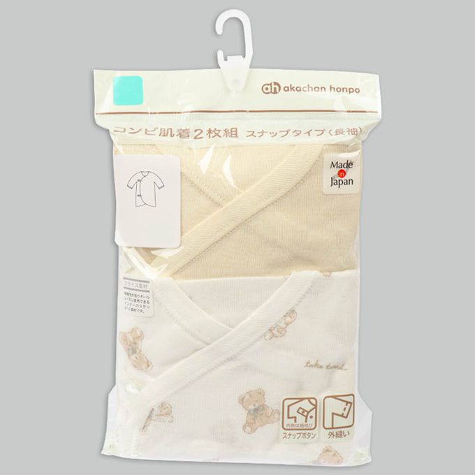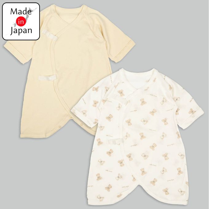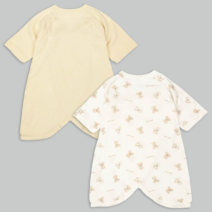 akachan honpo - 長袖蝴蝶裝2件組-小熊-淺卡其色 (50~60cm)
