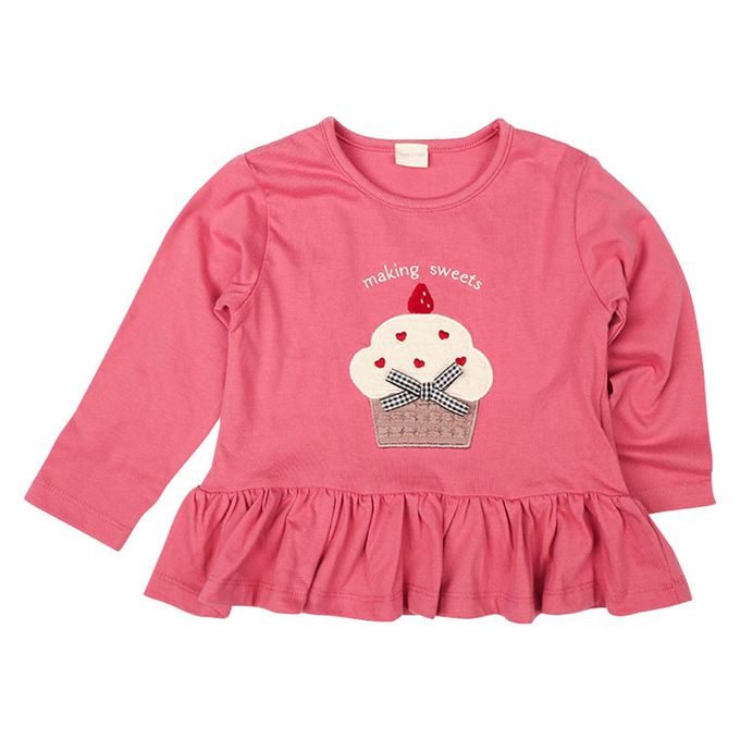 akachan honpo - 長袖T恤-前開岔-粉紅色