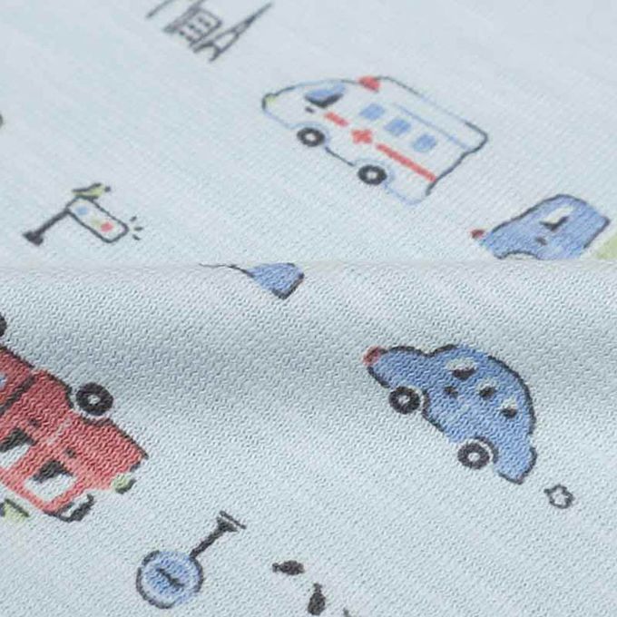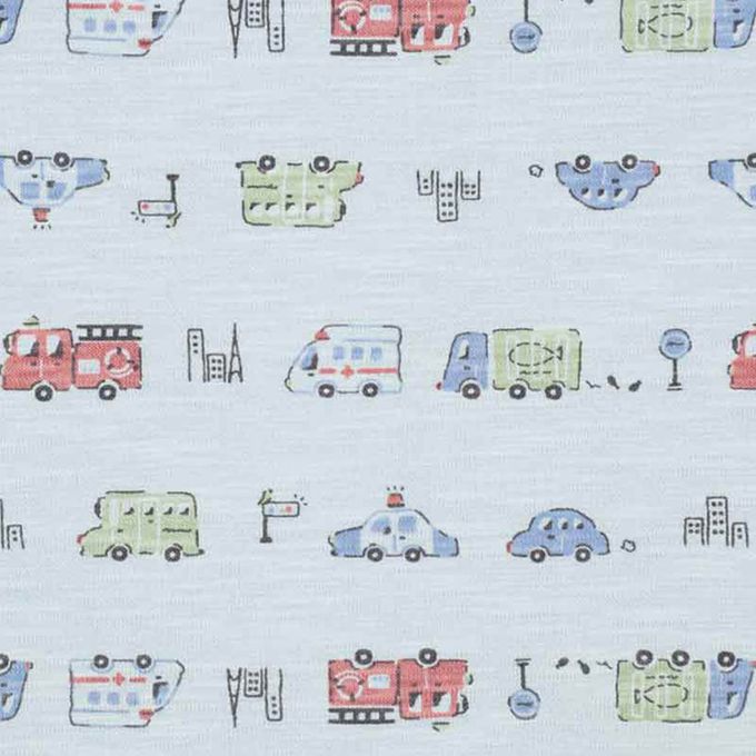 淺藍色搭配工程車的橫紋風滿版印花設計