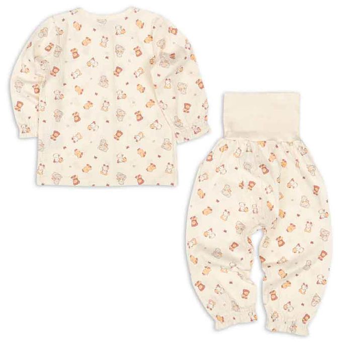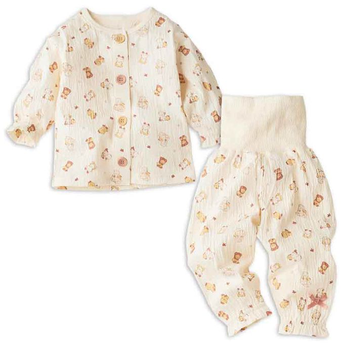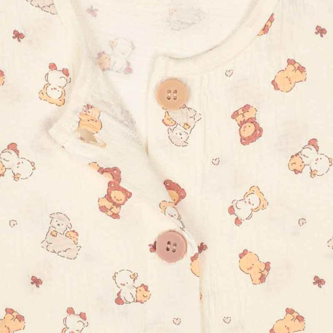 akachan honpo - 長袖家居服 穿衣練習-前開式 動物-象牙白色