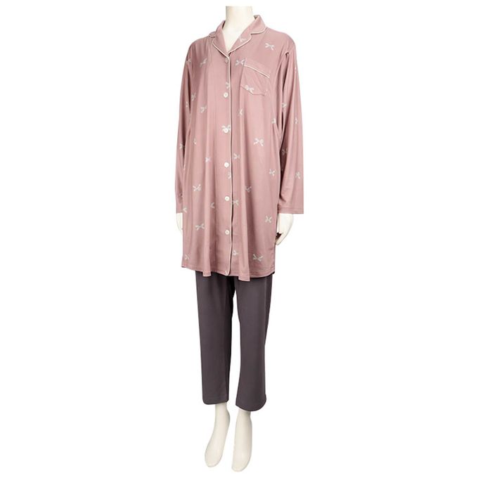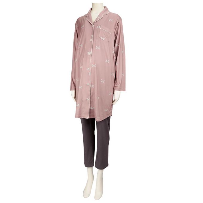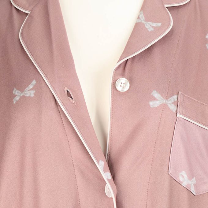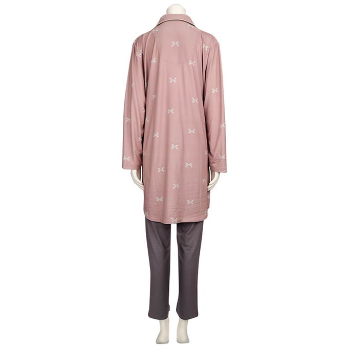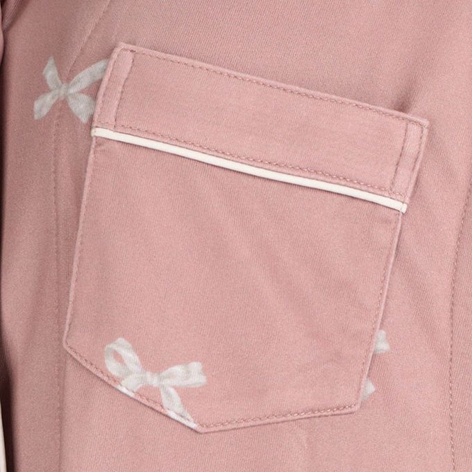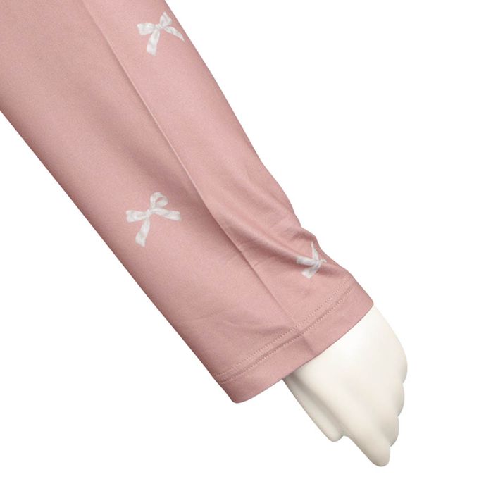 上衣為蝴蝶結滿版印花圖案,褲子為素面設計。