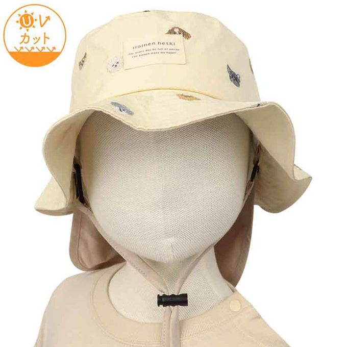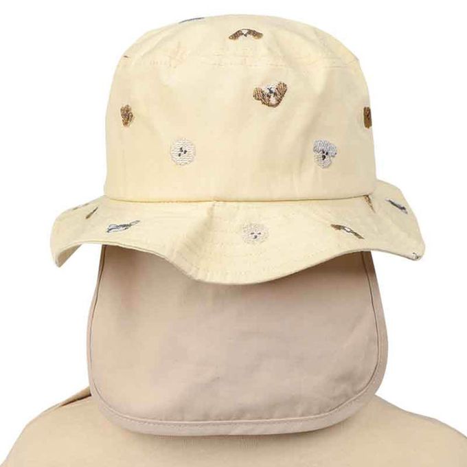 akachan honpo - 漁夫帽-附防曬遮陽布 動物印花-淺卡其色
