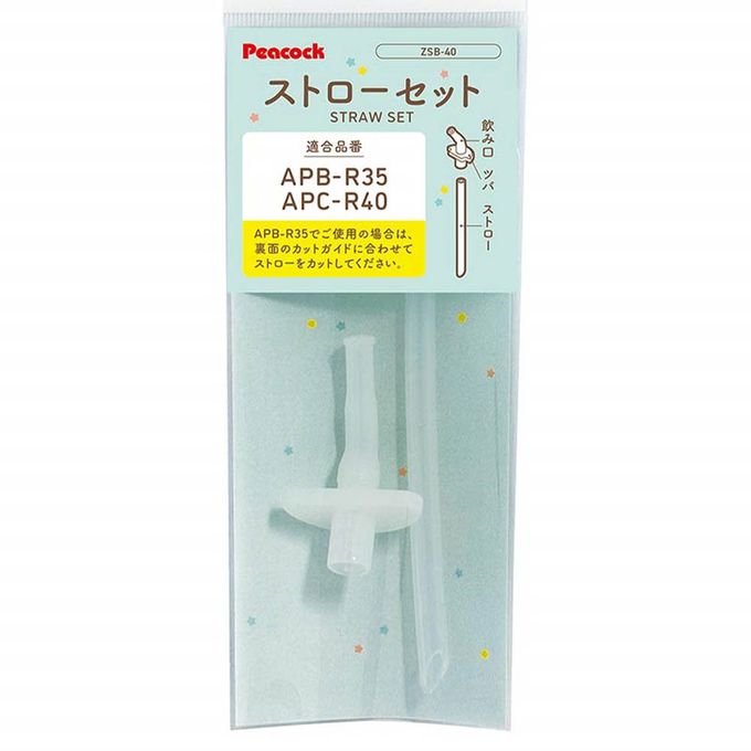 注意事項:●僅適用於Peacock製APB-R35/APC-R40的不鏽鋼水壺。●請注意避免幼童因玩耍、誤食而發生窒息等危險。●請勿作為其他用途使用。●請勿以微波爐消毒吸嘴和吸管。●請正確安裝吸嘴與吸管再使用。●吸管組為消耗品,建議使用1年後更換。