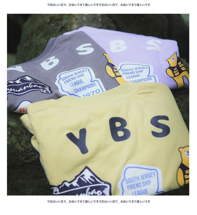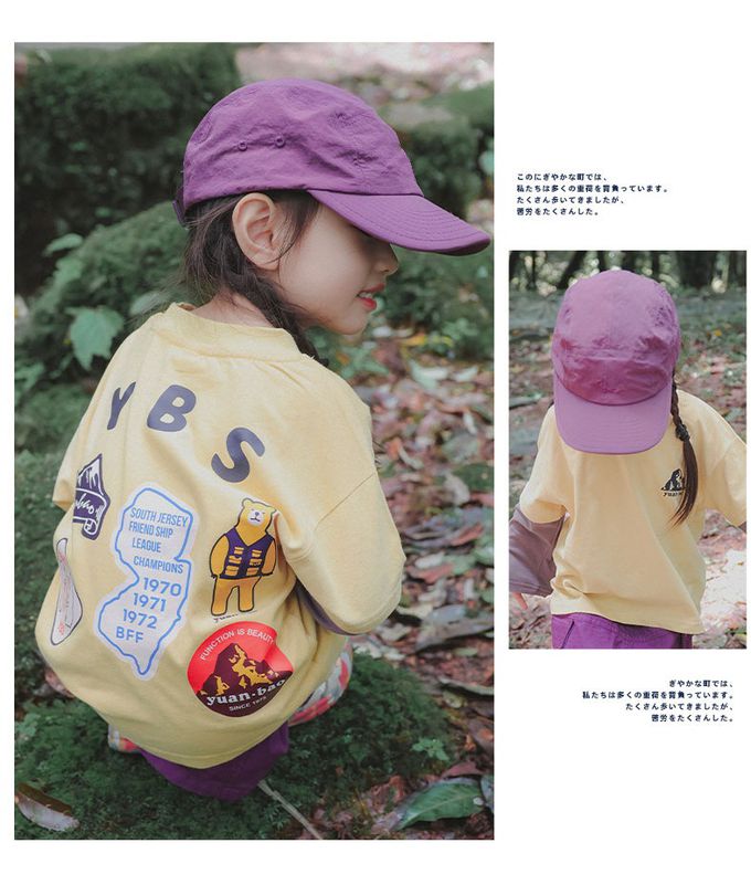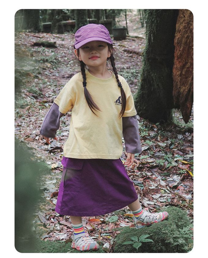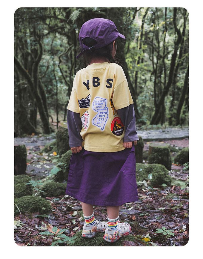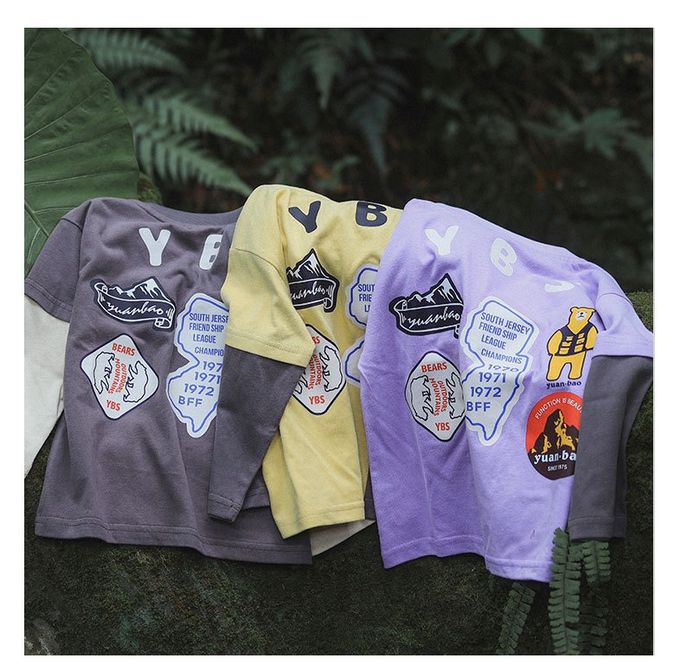 純棉圓領假兩件長袖上衣-標籤印花-黃綠色