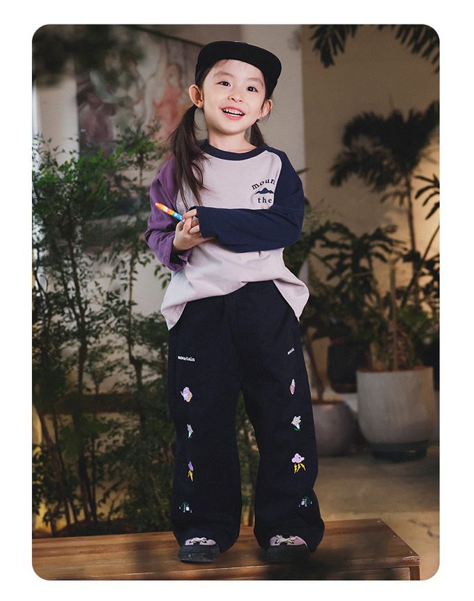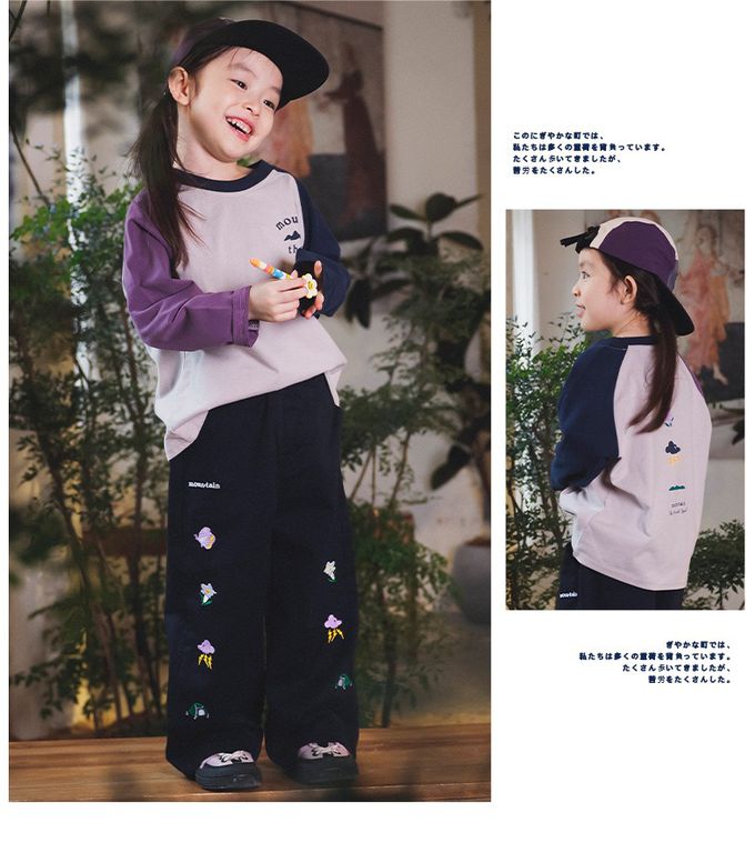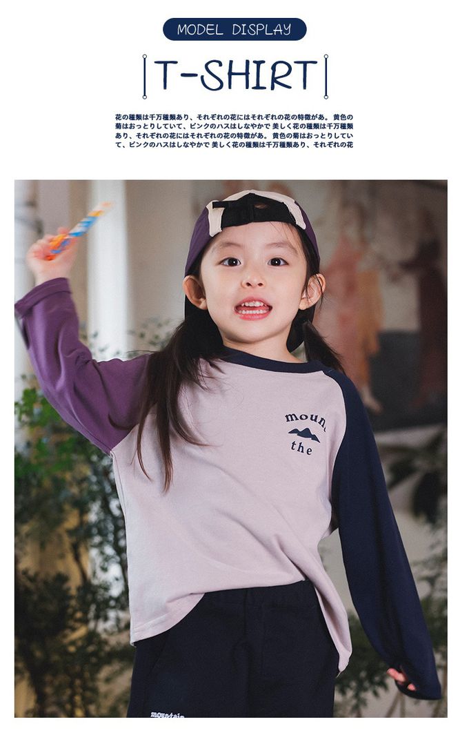 Y B S - 純棉圓領長袖上衣-一起去露營-拼袖杏