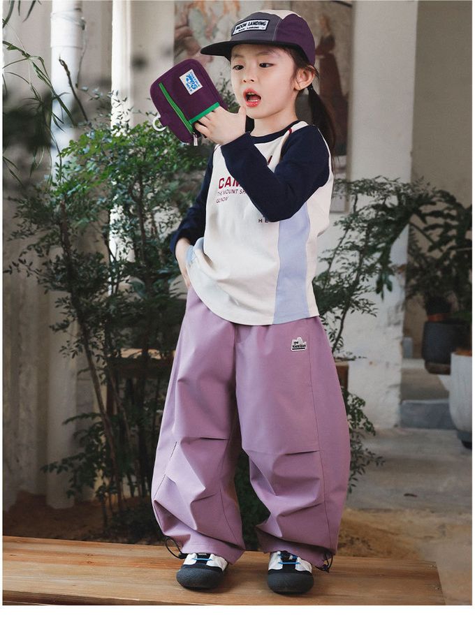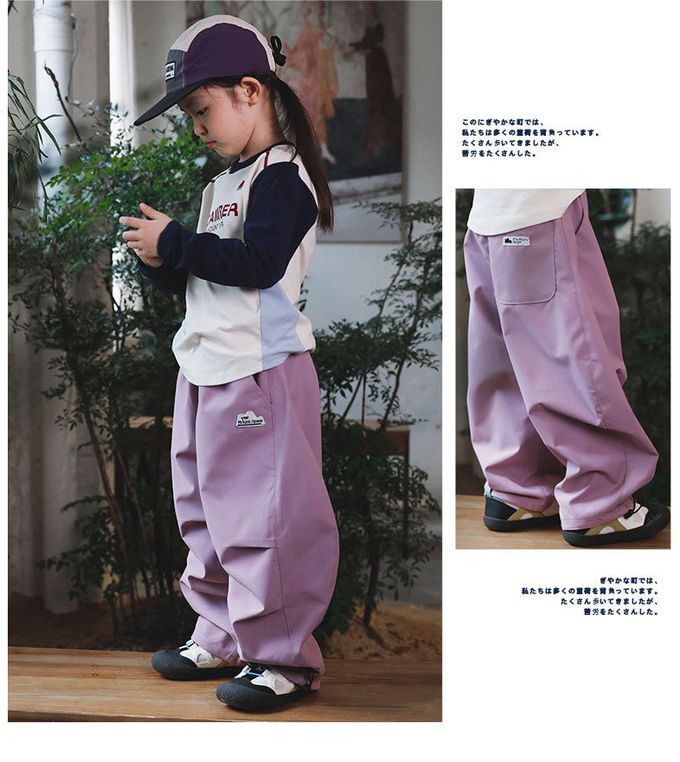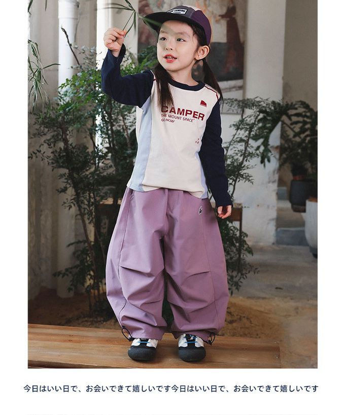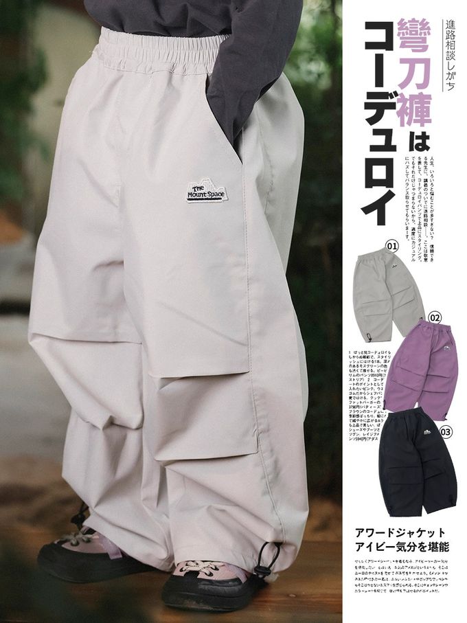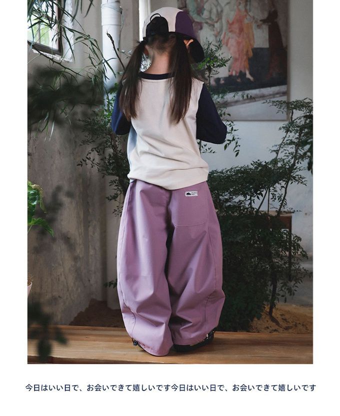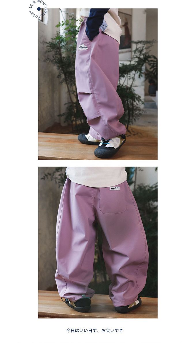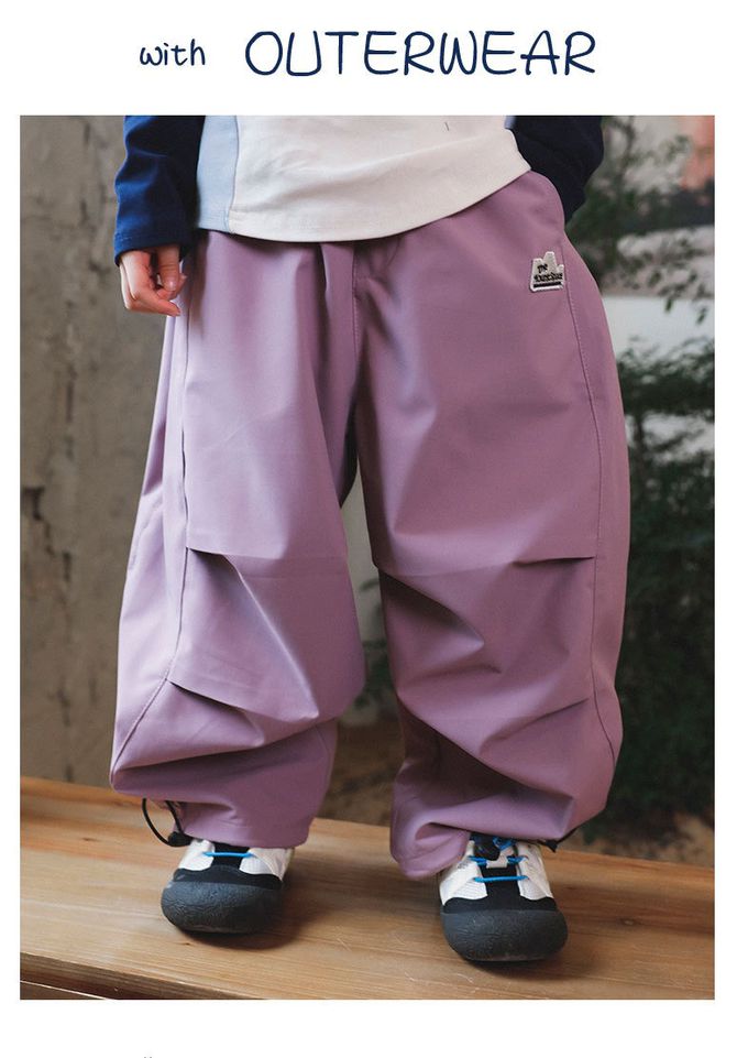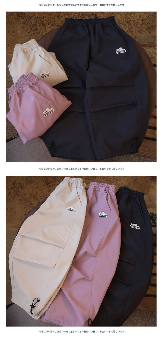 防潑水打褶休閒長褲-下擺抽繩-粉紫