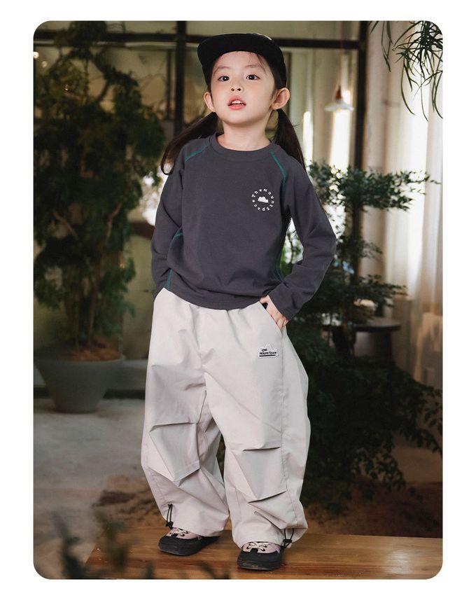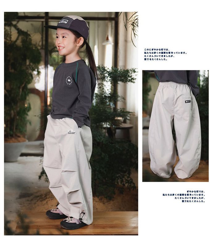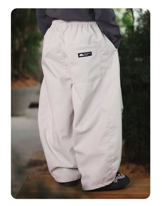 防潑水打褶休閒長褲-下擺抽繩-卡其灰