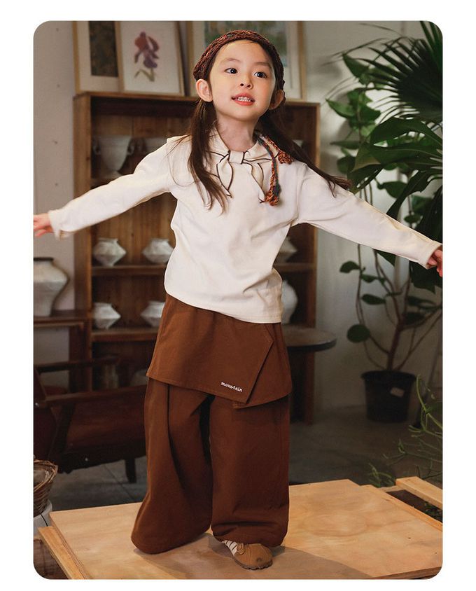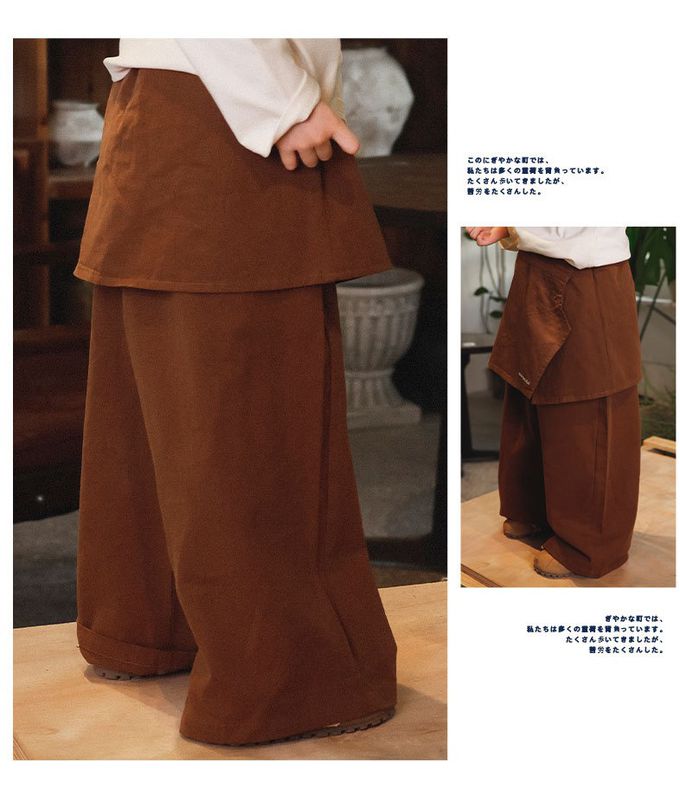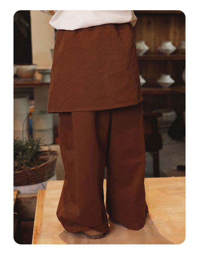 假兩件工裝直筒長褲-紅棕色