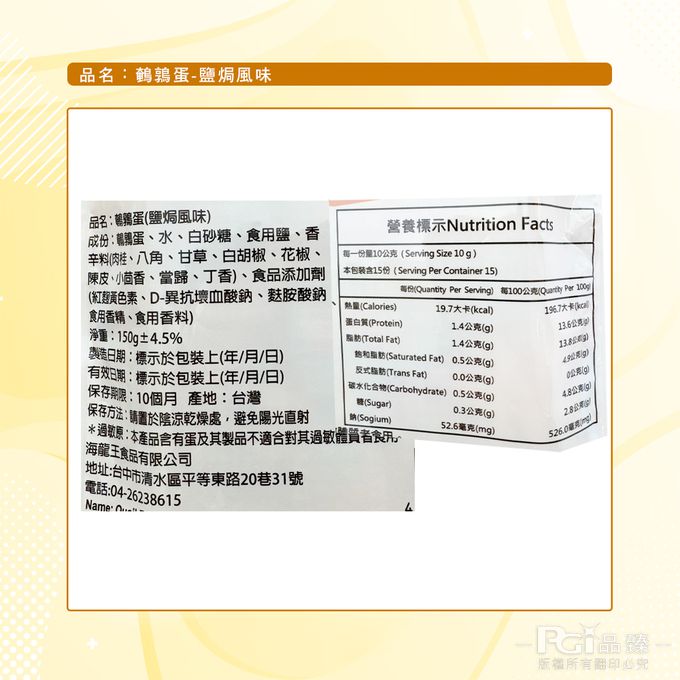 過敏原:本產品含有蛋及其製品不適合對其過敏體質者食用