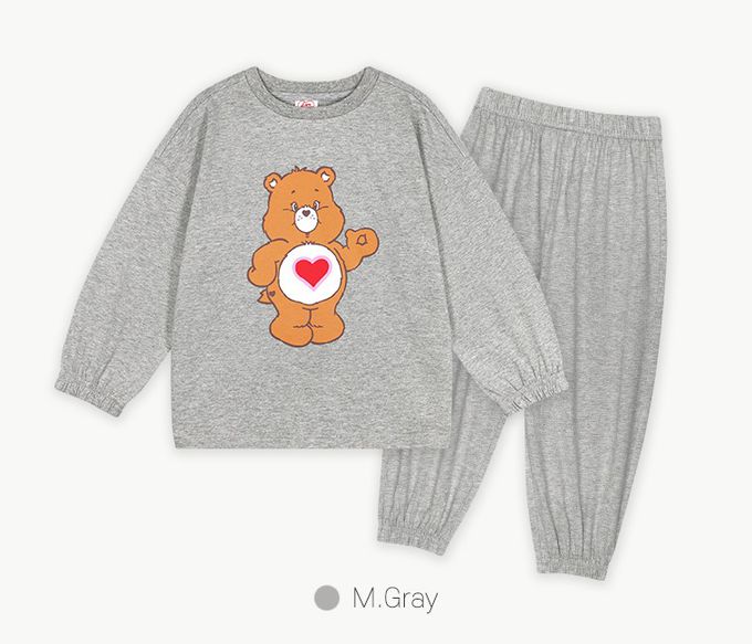 韓國 Care Bears - 聯名款哈囉大熊純棉縮口長袖套裝-灰