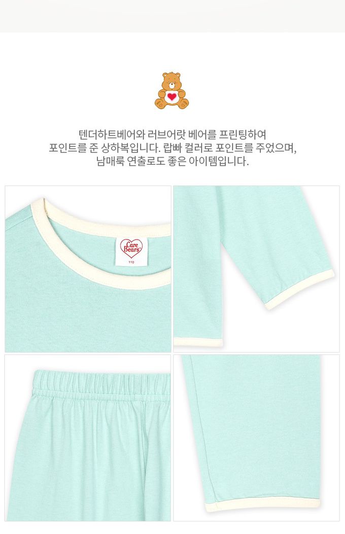 韓國 Care Bears - 聯名款雙心熊熊純棉長袖套裝-湖水綠