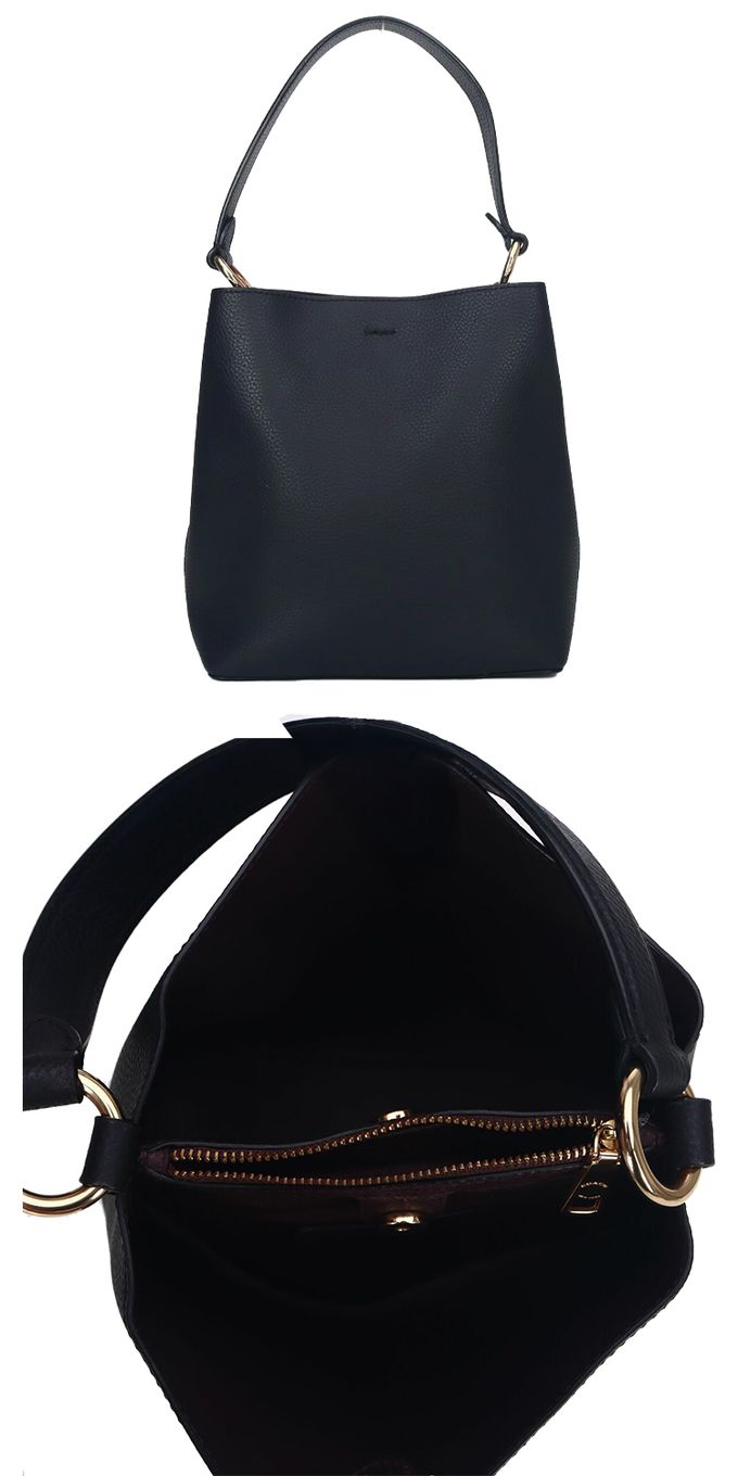 素面皮革肩斜兩用水桶包 (黑)