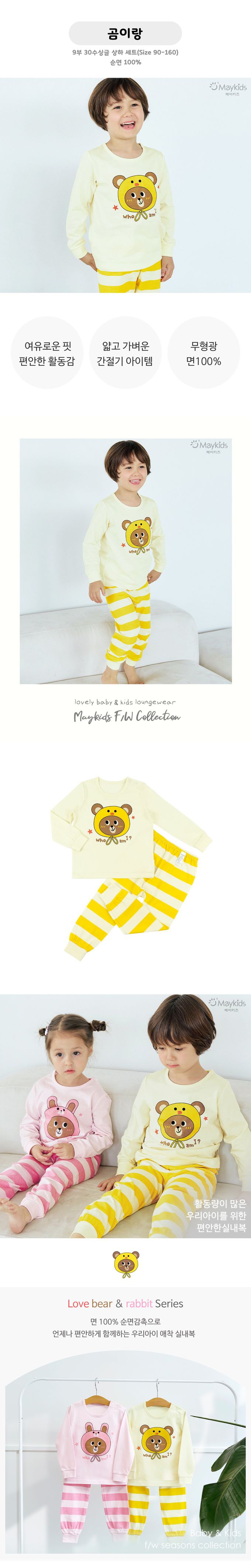韓國 Maykids - 細緻柔棉薄長袖家居服-熊熊鴨-黃