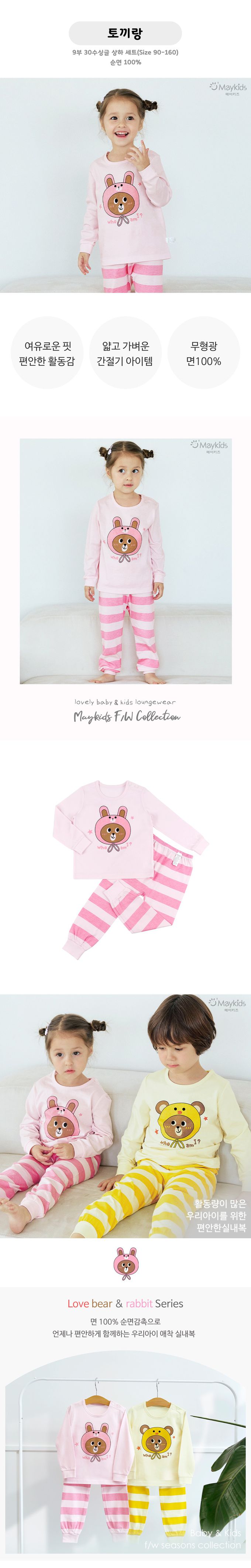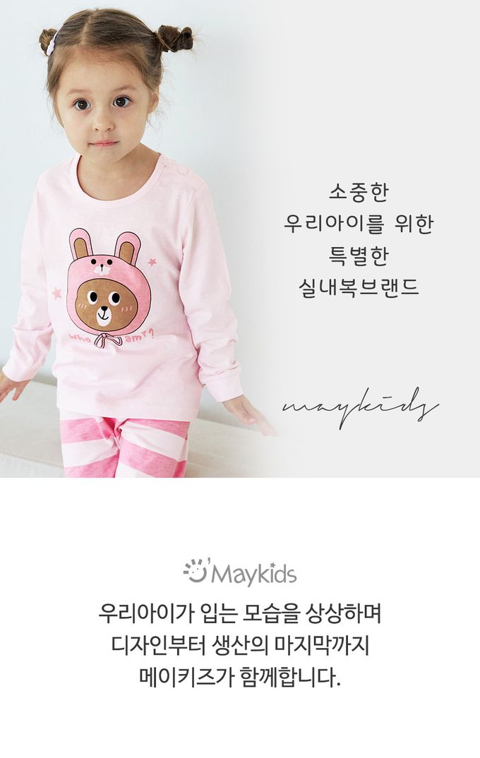 韓國 Maykids - 細緻柔棉薄長袖家居服-熊熊兔-粉