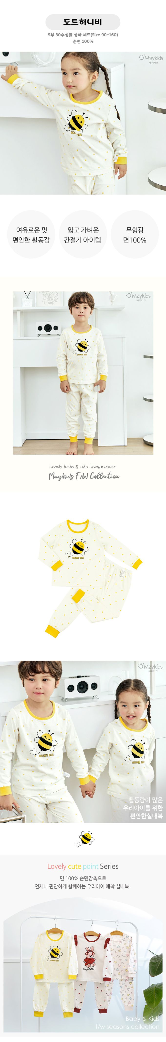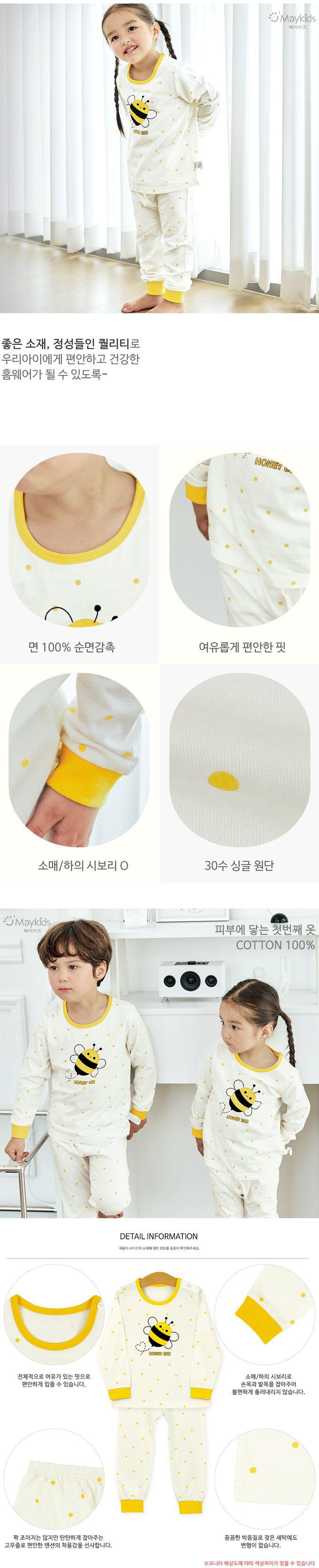 韓國 Maykids - 細緻柔棉薄長袖家居服-點點蜜蜂