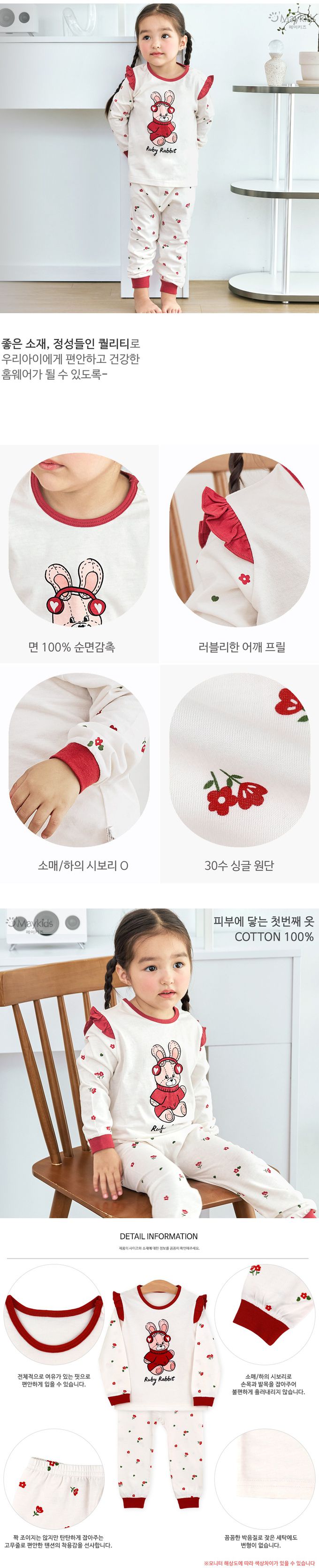 韓國 Maykids - 細緻柔棉薄長袖家居服-耳機玩偶兔