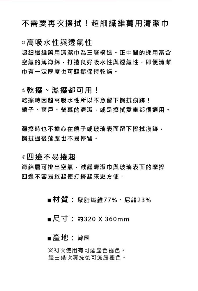 洗滌/清潔建議:初次使用可能產生退色,經幾次清洗後可減緩退色