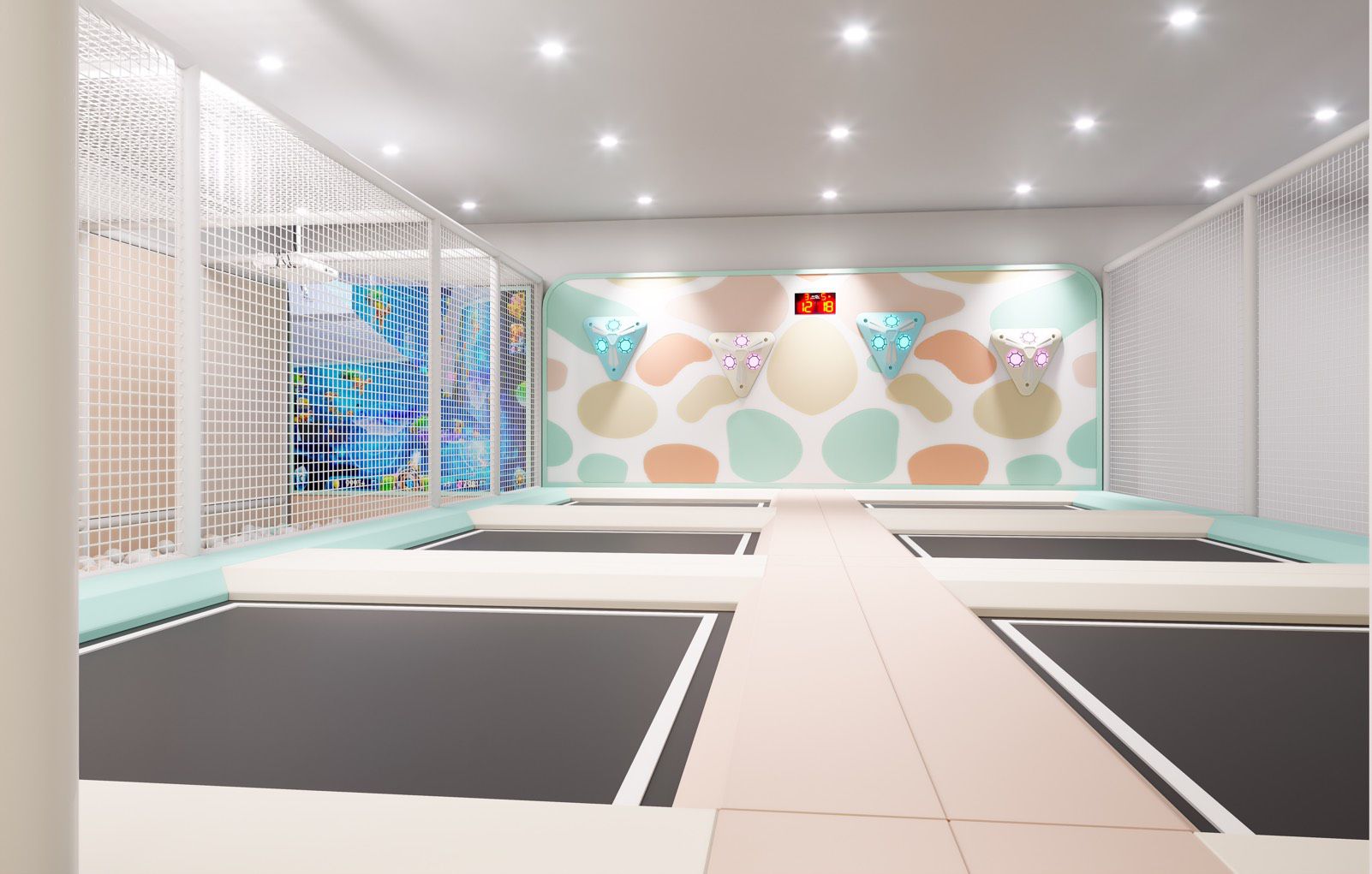 彈跳床這區牆面設有計分版,除了原地彈跳以外,還可以和其他朋友一起彈跳競賽計分