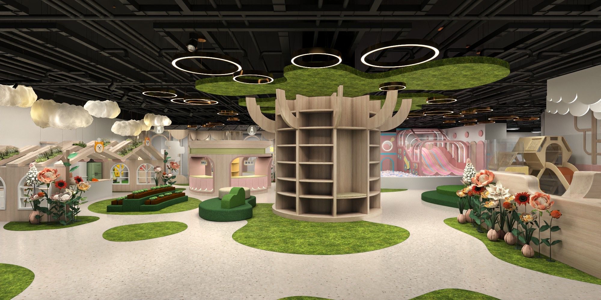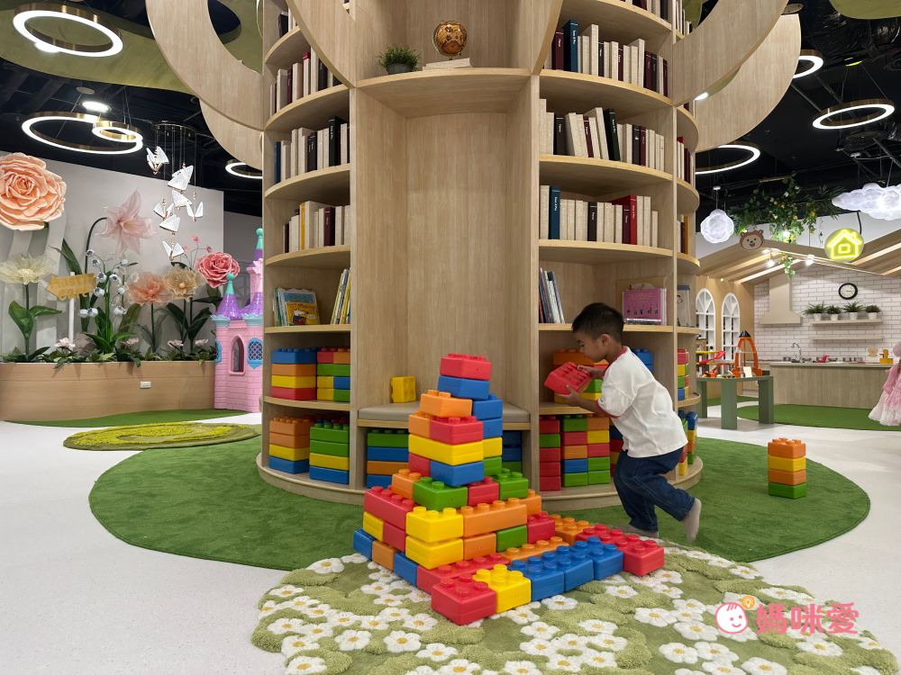 館內靜態遊戲區也非常豐富,小樂媽咪私心最愛的一區就是「花園廣場」了!閱讀樹起延伸至小木屋廚房、陽光農場、茉莉花園等,整體設計氛圍非常舒服放鬆