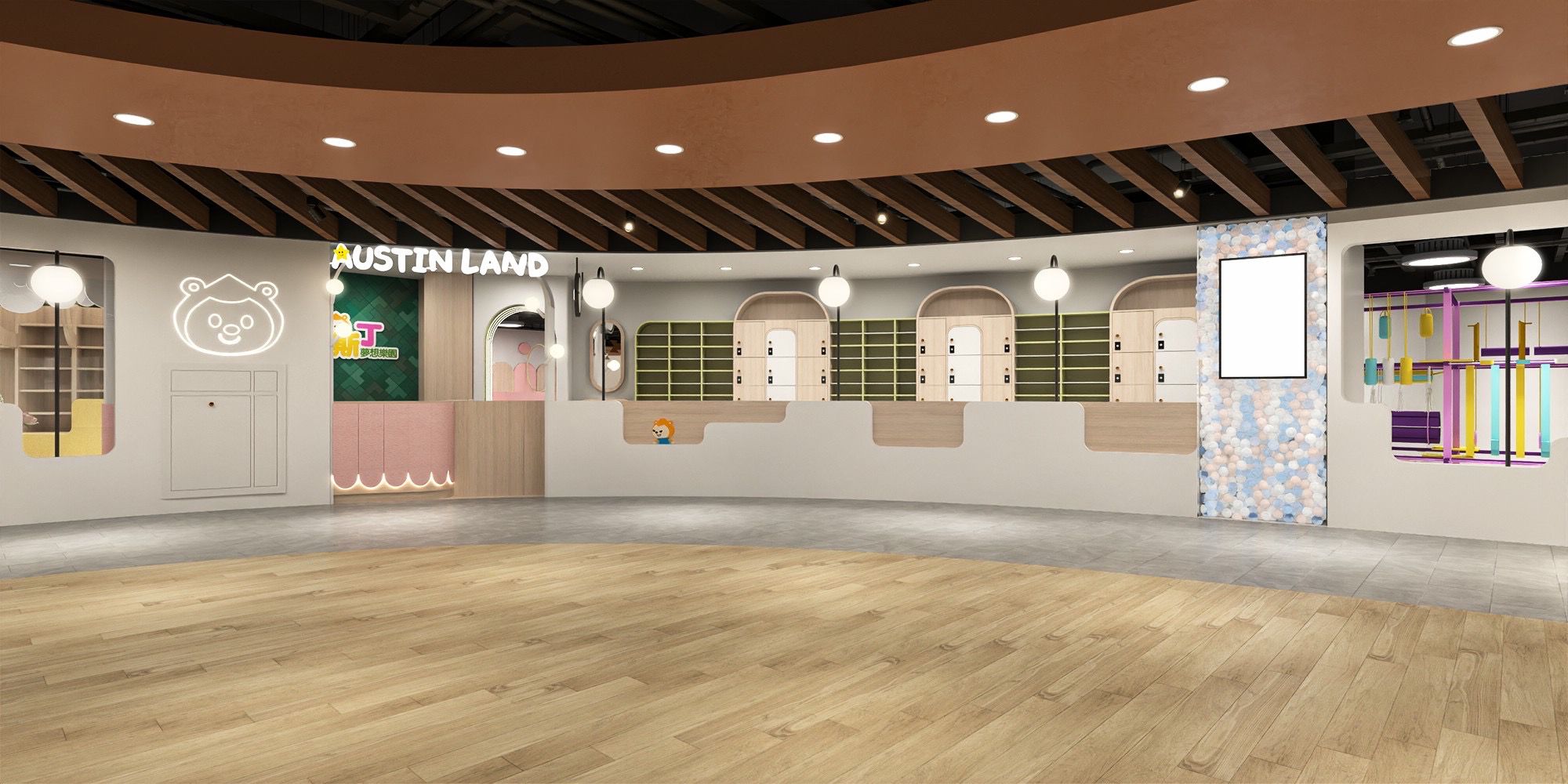 樂園分兩大區域,櫃檯後方是『夢想樂園』,櫃檯前方區域則是『沙池樂園』。入園後會得到手環,可以感應開啟使用置物櫃。