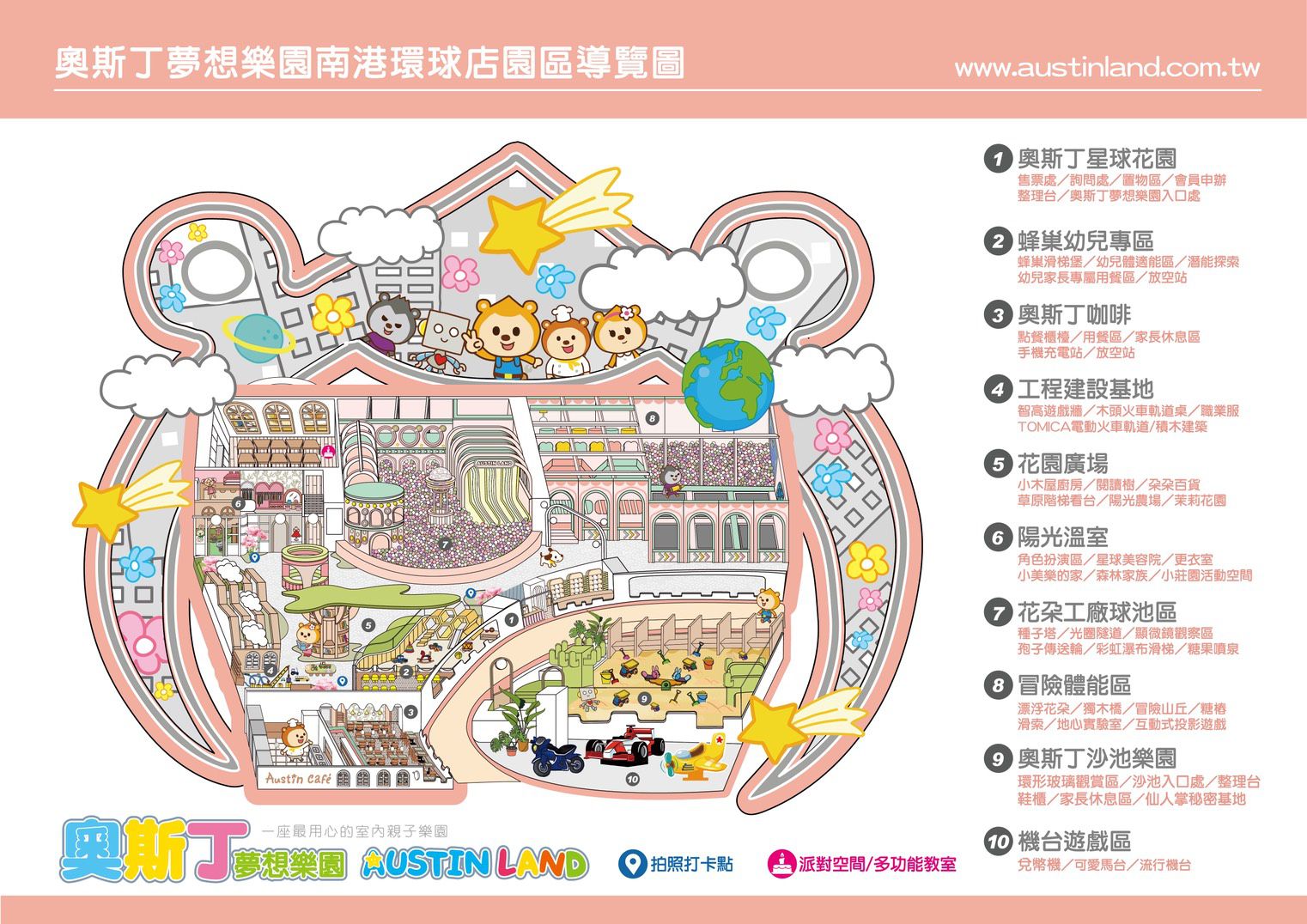 假日去哪裡放風?相信很多爸媽的口袋清單裡都有兒童樂園~【奧斯丁夢想樂園 南港店】位於南港車站內的Globalmall環球購物中心中,交通超方便!自己開車或搭大眾運輸都很易達~而且位於百貨公司內,可以一次滿足全家的休閒需求!也不怕風吹日曬雨淋,可以輕鬆育兒!