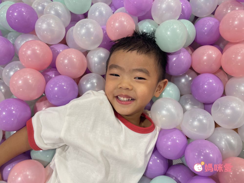 首先來介紹親子館必備球池區「花朵工廠球池區」,大空間球池搭配彩色燈光溜滑梯,絕對是所有小孩都會愛的區域,球池邊軟墊家長還可以就近坐在旁邊陪伴