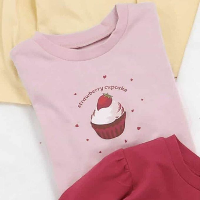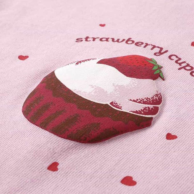 日本 apres les cours - 天天穿百搭印花長袖上衣-草莓小蛋糕-粉紅