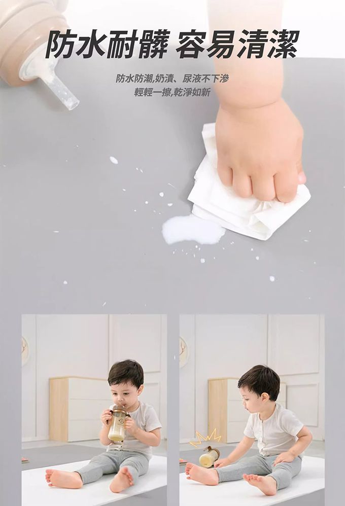 注意事項:主要材質:聚氨酯(PU)、泡棉(XPE) 商品尺寸:約 130x150x2cm 商品淨重:約 2.3kg 產地:中國 【注意事項】 ● 請遠離火源及熱源。 ● 本產品必需由成人組裝。 ● 請放置於平坦地面上使用。 ● 使用前,請完整閱讀使用說明書。 ● 兒童使用本產品時,需有成人在旁監護。 ● 本產品因考量衛生安全,經使用後恕不接受退換貨。 ● 勿用吸塵器強力清掃地墊,可能會造成產品表面損傷。 ● 地面如有濕氣,鋪上本產品可能會造成地面染色及異味產生。 ● 若用油性筆等化學處理製造的用品塗鴉,可能無法擦拭清潔。 ● 不允許任意修改,修改後可能會減低產品的安全性造成危險。 ● 請留意所有PE材質的泡綿都會隨著時間流逝,而有些微的凹陷產生。 ● 請勿用水洗滌、不可使用漂白劑、高濃度清潔劑或化學藥劑清潔本產品。 ● 請勿將較重的家具及鋒利的物品放在產品上,可能會造成無法恢復的壓痕或損傷。 ● 為避免嬰兒或兒童產生窒息之危險,請於拆卸後立即將此塑膠袋銷毀或遠離嬰兒及兒童。 ● 表面若有髒污時,請使用濕布擦拭。如使用粗糙的刷子或清潔劑清潔產品,可能會造成表面損傷。