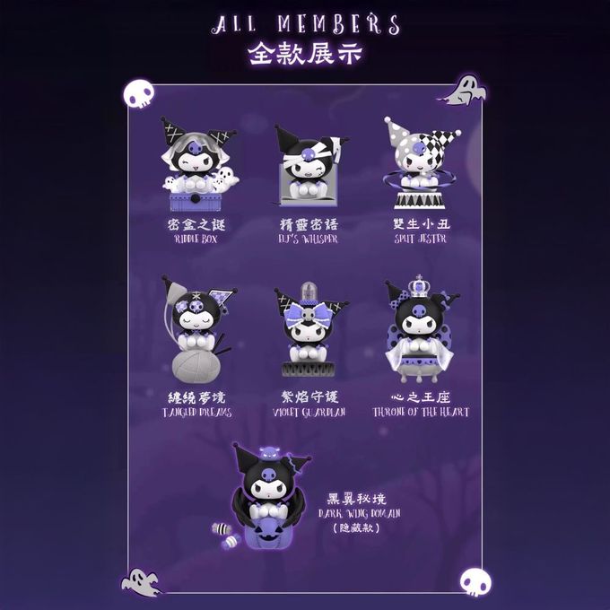 品名:MINISO名創優品 三麗鷗Sanrio Kuromi 暗夜物語系列 盒玩 盲盒 盲抽 公仔 玩偶 手辦模型(隨機2盒入)